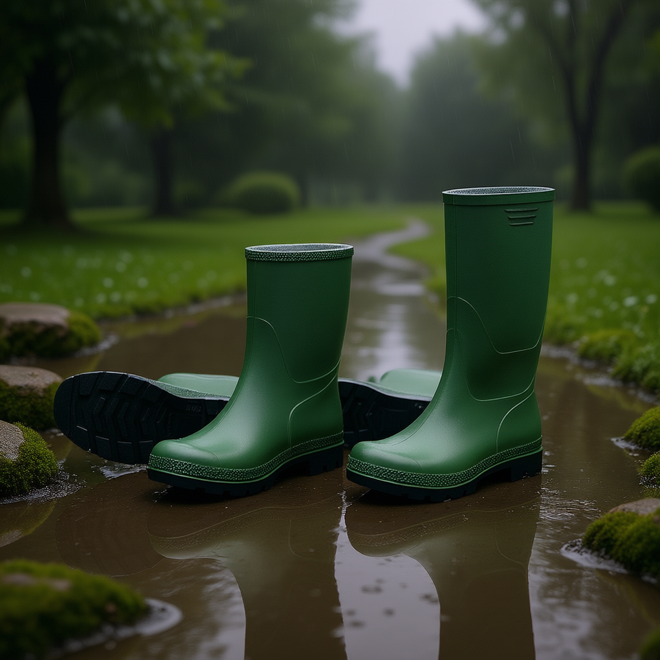Bottes de pluie Ttake Green en PVC, hauteur genou, taille 40, avec semelle noire