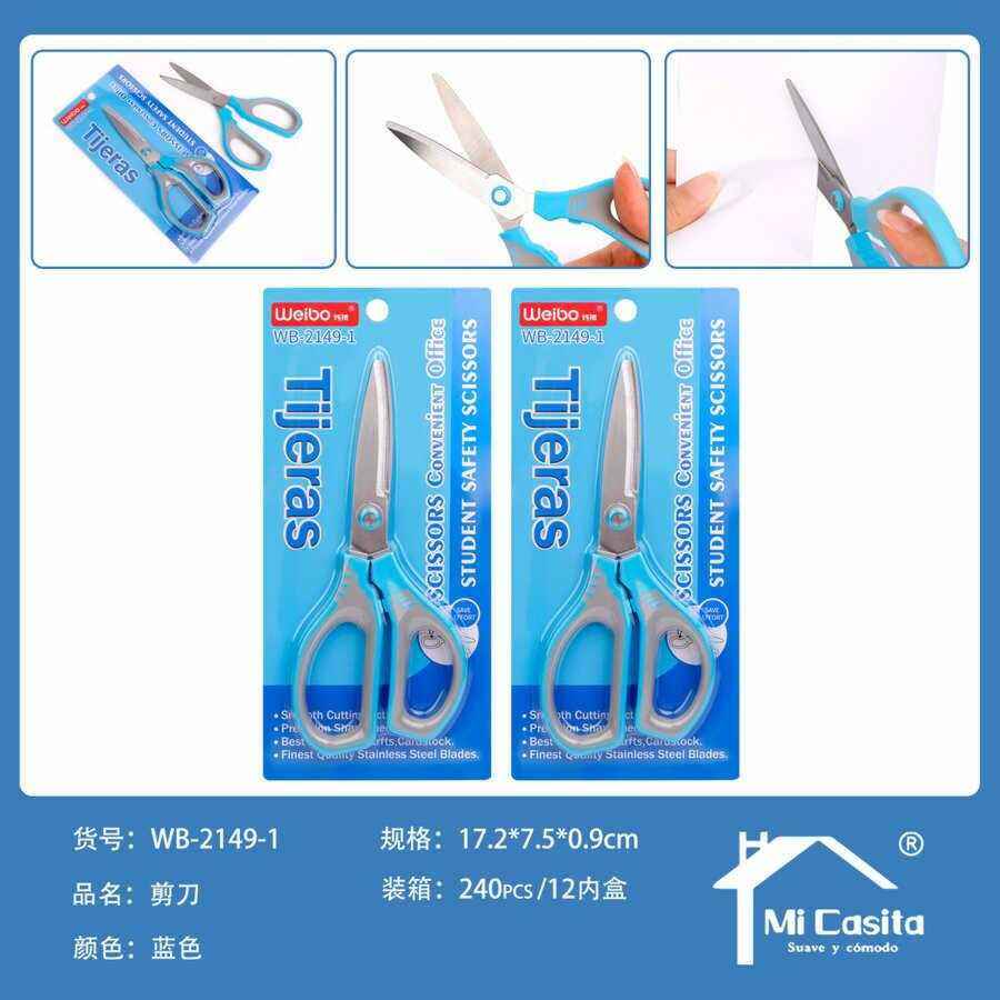 Ciseaux de sécurité pour étudiants Tueibo 18 cm, manche en plastique bleu, lame en acier inoxydable, usage bureautique