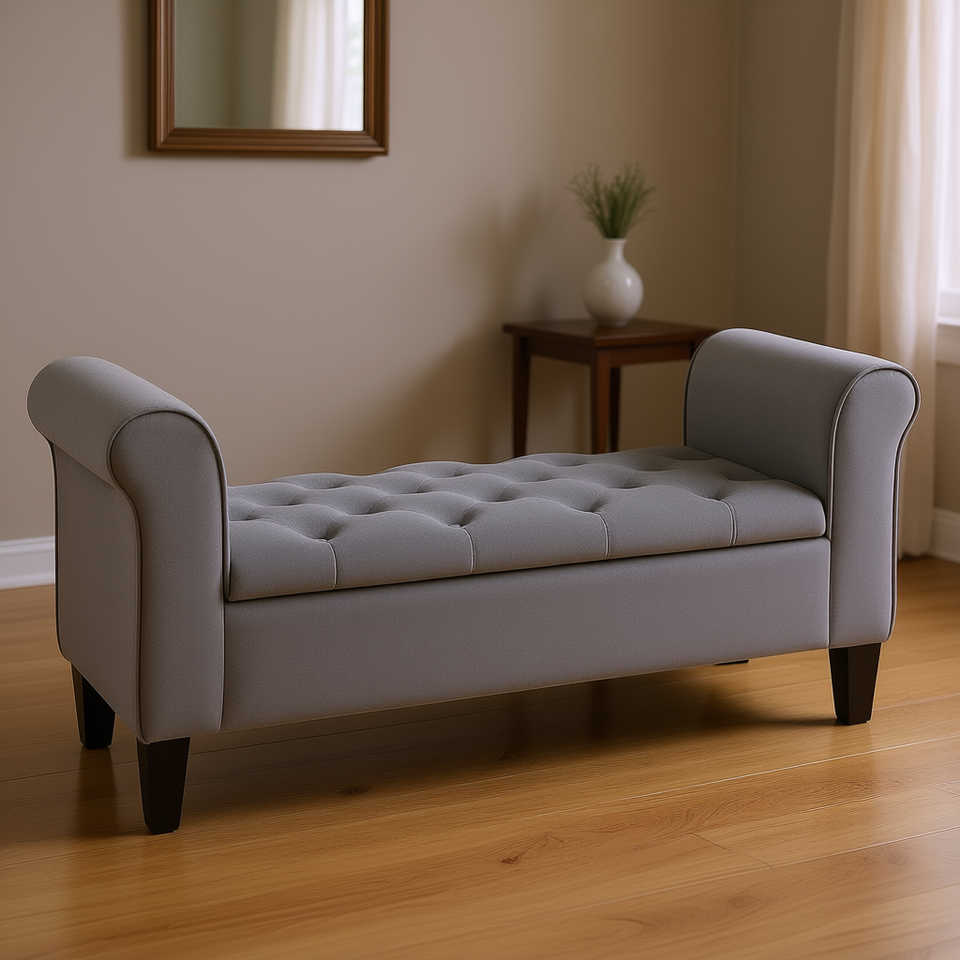 Banc de rangement capitonné gris, pliable, pour entrée, en tissu rembourré, meuble de salon, modèle D0100XF3YC6