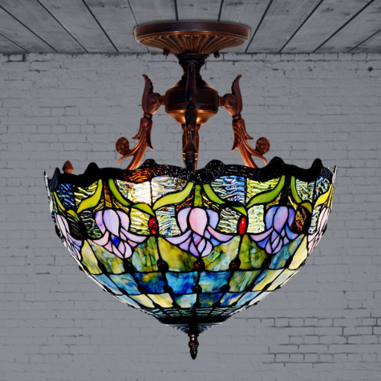 Nom du produit:Lampe de plafond en verre teinté de plafonnier Tiffany