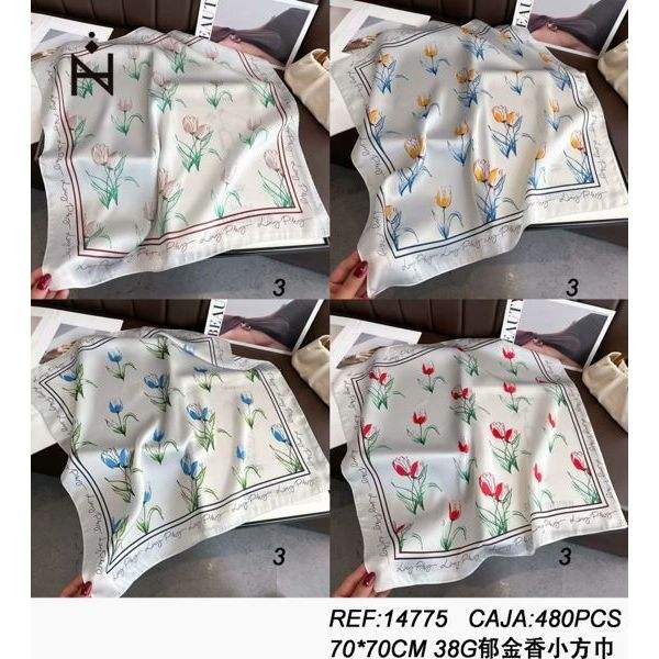 Écharpe carrée en soie à motif de tulipes 70x70 cm, légère, accessoire de mode pour femmes