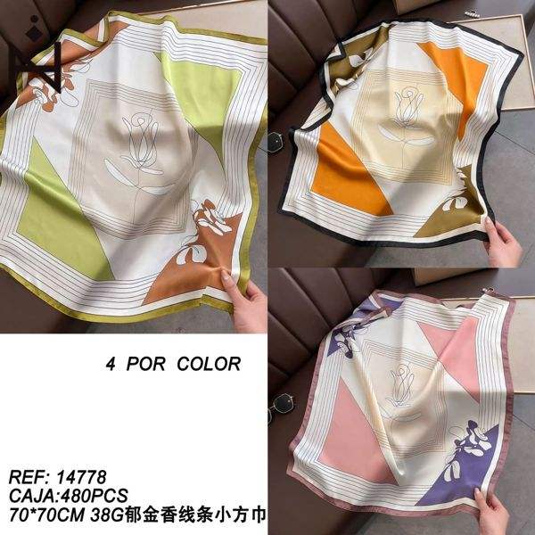 Petit foulard carré à motif de tulipes 70x70cm 38g en mélange de soie, accessoire de mode pour femmes
