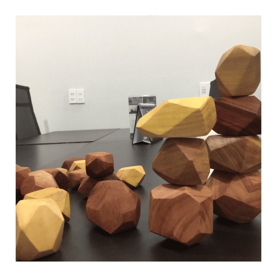 Tumi ishi Wooden Rock crafted using raw natural wood supporting mindful stacking challenges and creative setups, made in Vietnam