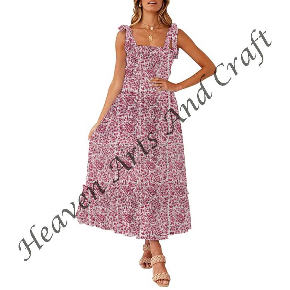 Model Number:Hand Block Printed Spaghetti Strap Dress