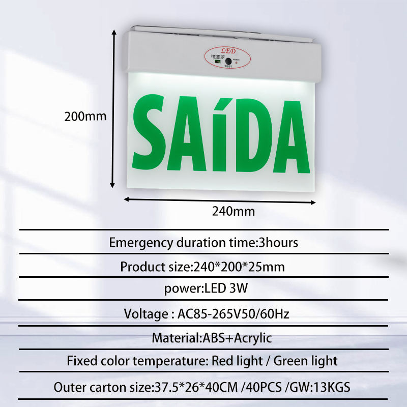Panneau de sortie SAIDA à suspendre, alimenté par batterie, 3W, 85-265V, 110V, 220V, prix usine Tuoming, éclairage de secours