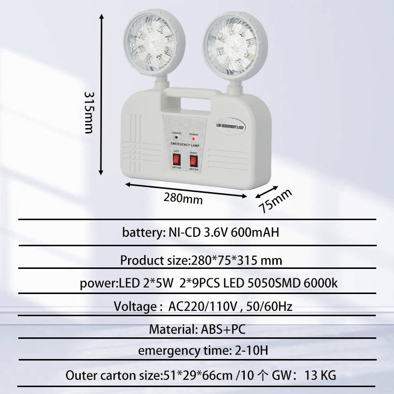 Nom du produit:Lampe de secours LED rechargeable à double tête, murale