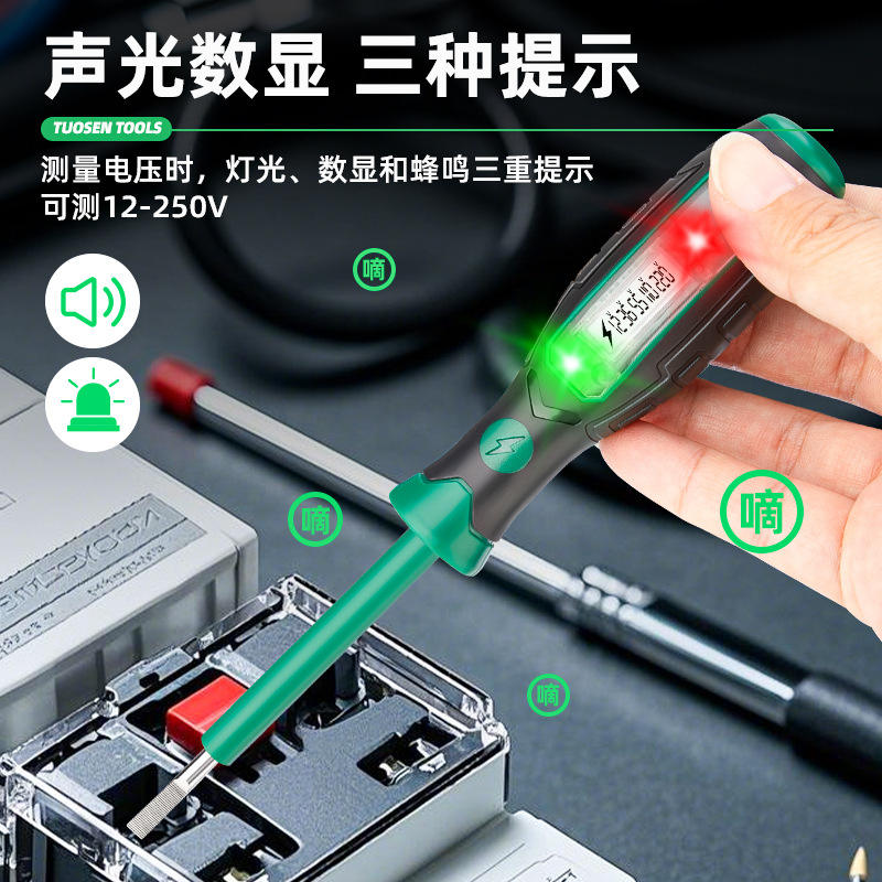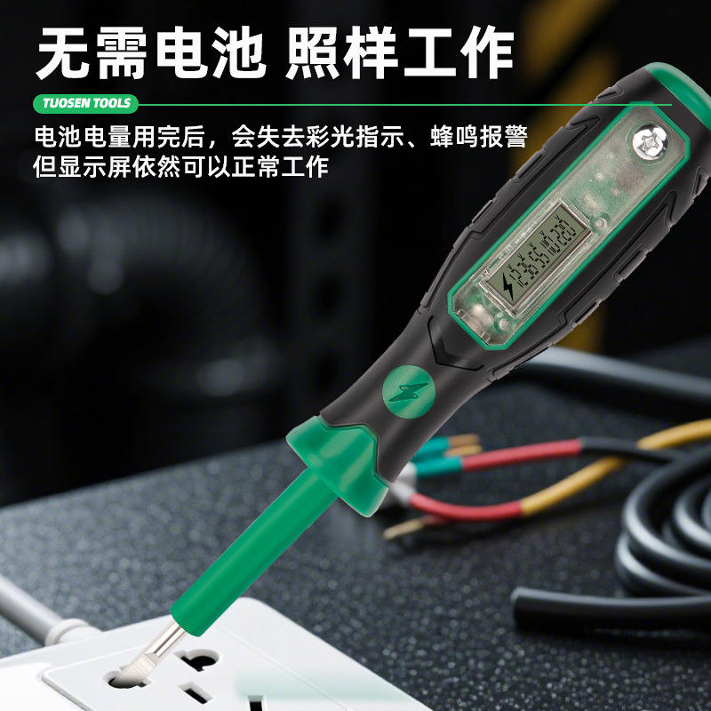 Testeur de tension numérique Tuosen avec écran LCD 0-600V monophasé, alimenté par batterie, IP65, outil tournevis