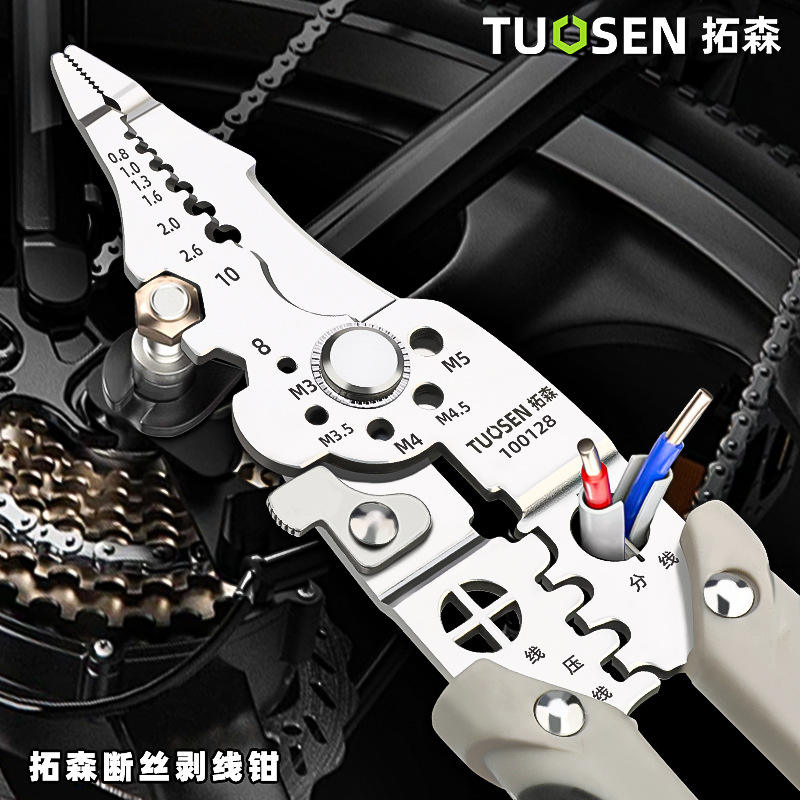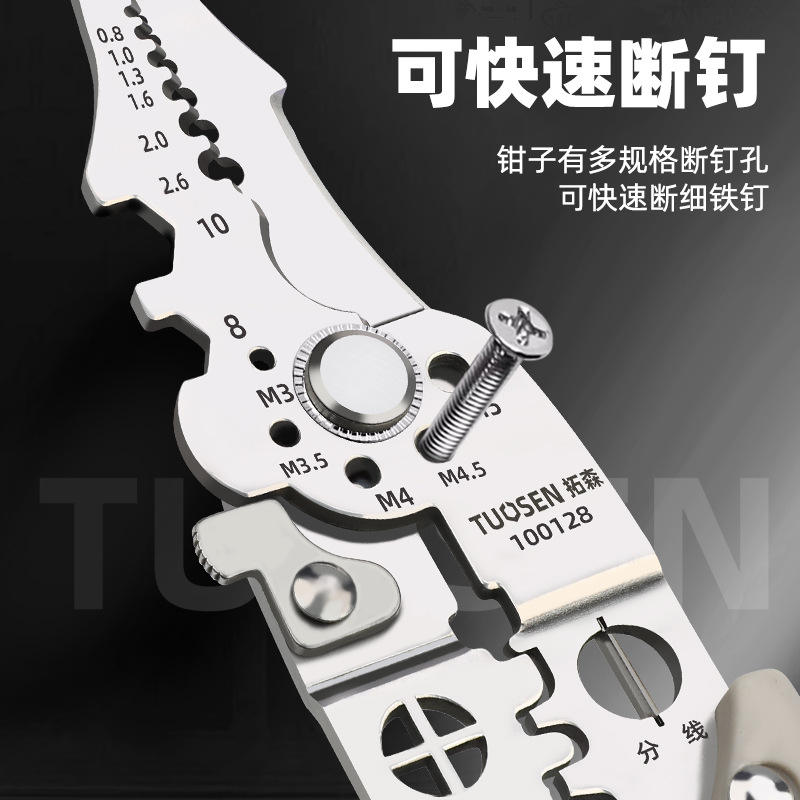 Pince à dénuder multifonction Tuosen 14-en-1 de qualité industrielle pour électricien, en acier inoxydable avec lame en acier à haute teneur en carbone
