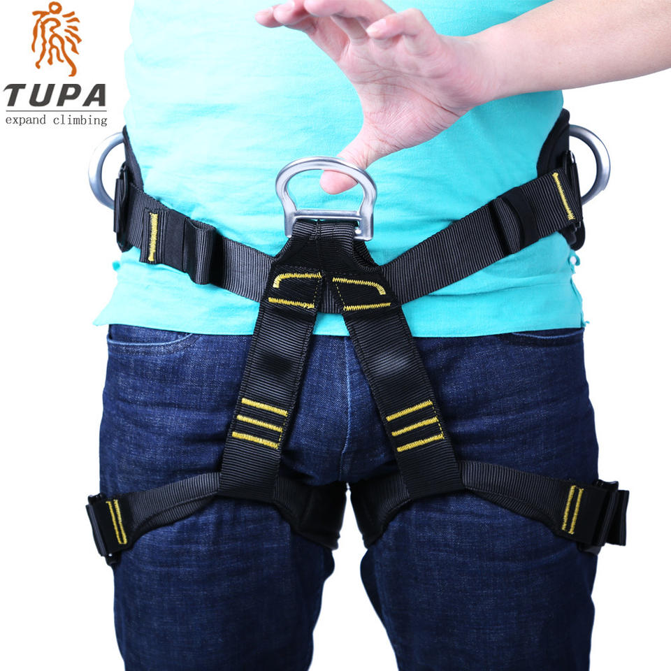 Harnais de sécurité demi-corps Tupa en polyester, réglable, avec boucle à connexion rapide et 3 anneaux en D pour l'escalade, la descente en rappel et les aventures en plein air