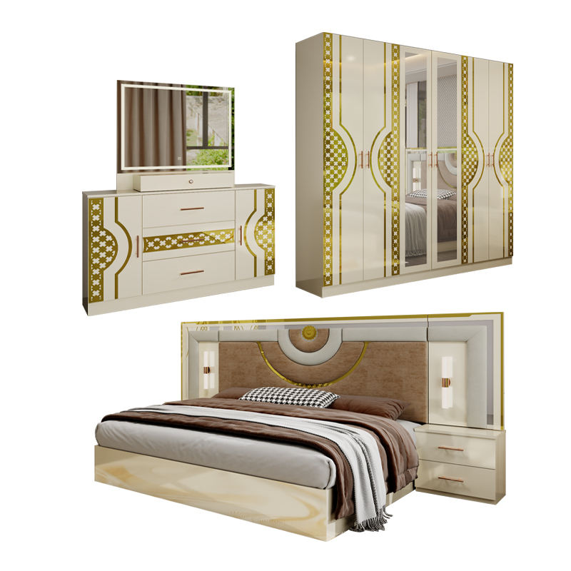 Ensemble complet de meubles de chambre à coucher de style turc pour adultes, lit king size moderne, chambre double, cadre en bois, ensemble de meubles de chambre à coucher de luxe