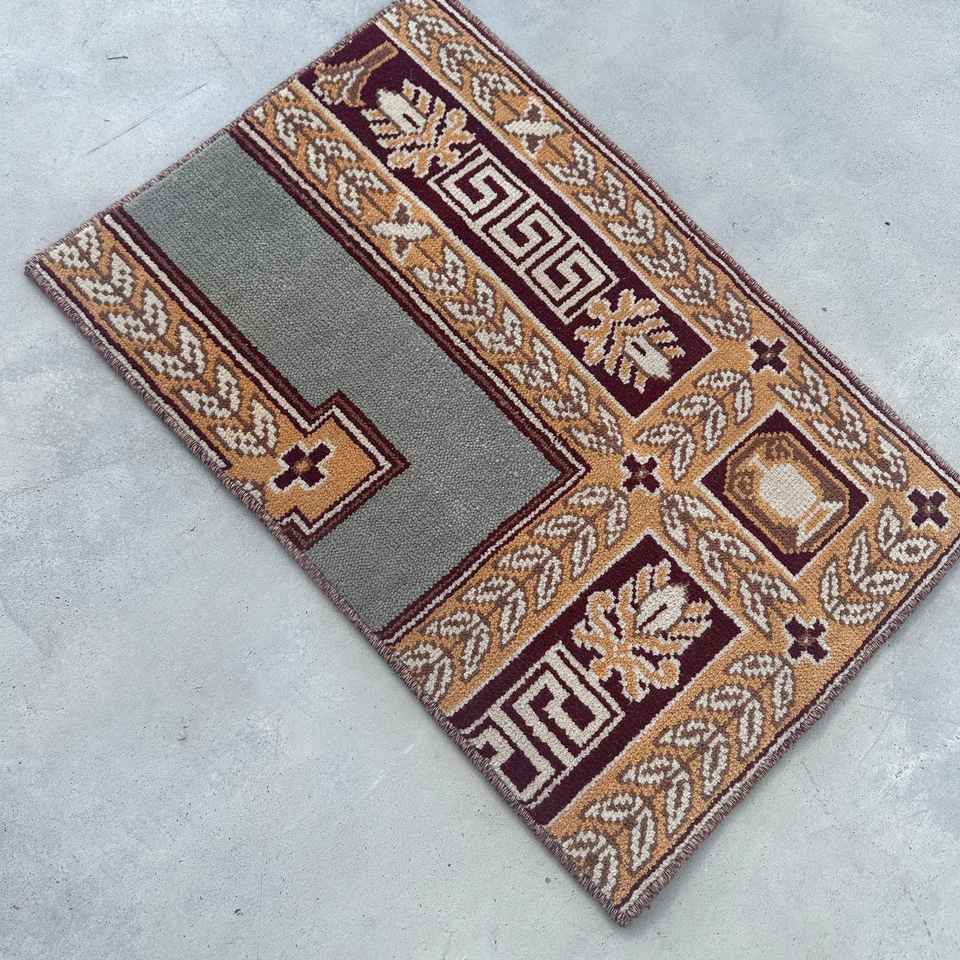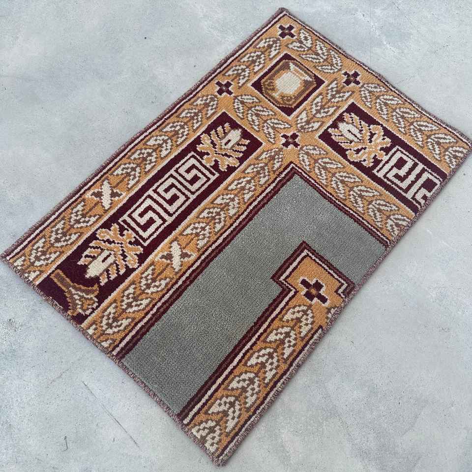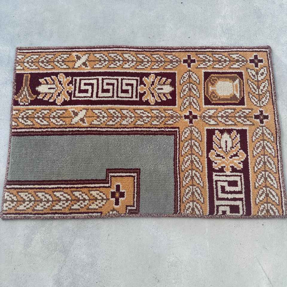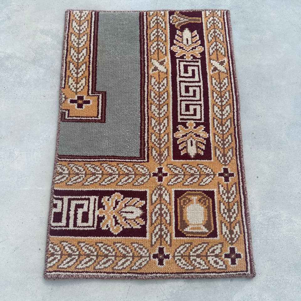 Tapis turc 1,3 x 2,1 pieds, petit tapis vintage, tapis patchwork marron gris