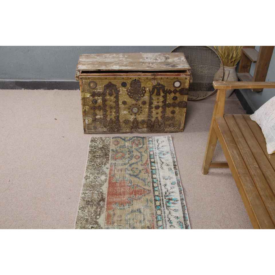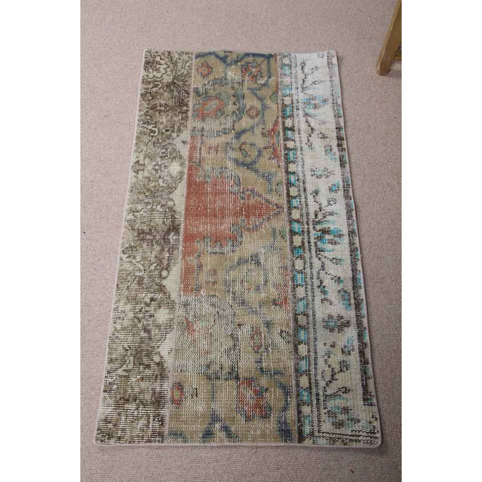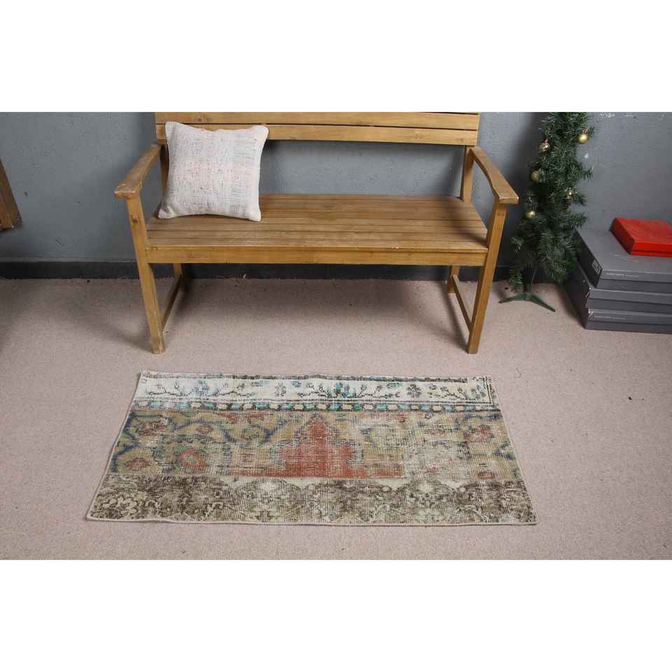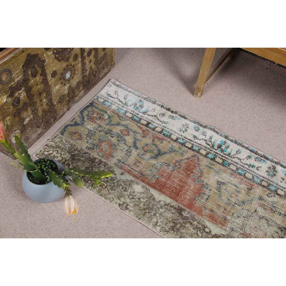 Tapis turc 2,1 x 4,1 pieds, petit tapis vintage, tapis floral marron et bleu