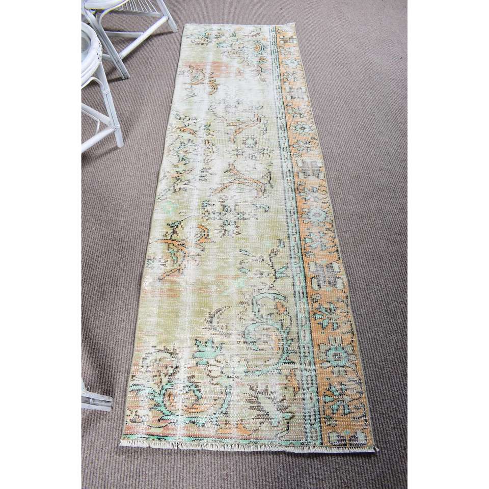 Tapis turc 2,2 x 7,5 pieds, tapis vintage, tapis oriental vert en laine