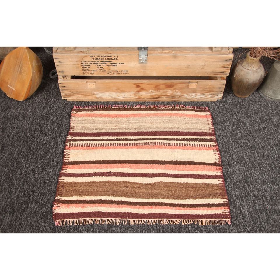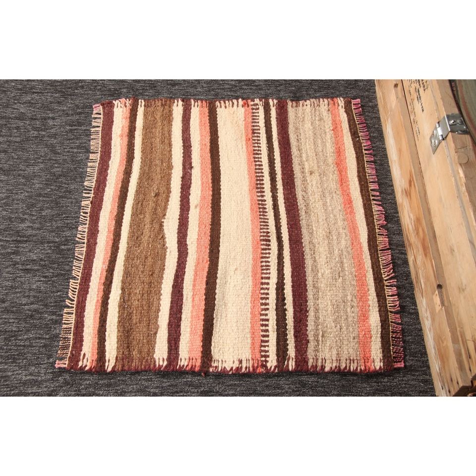 Tapis turc 2,7 x 2,4 pieds, petit tapis vintage, tapis rayé beige