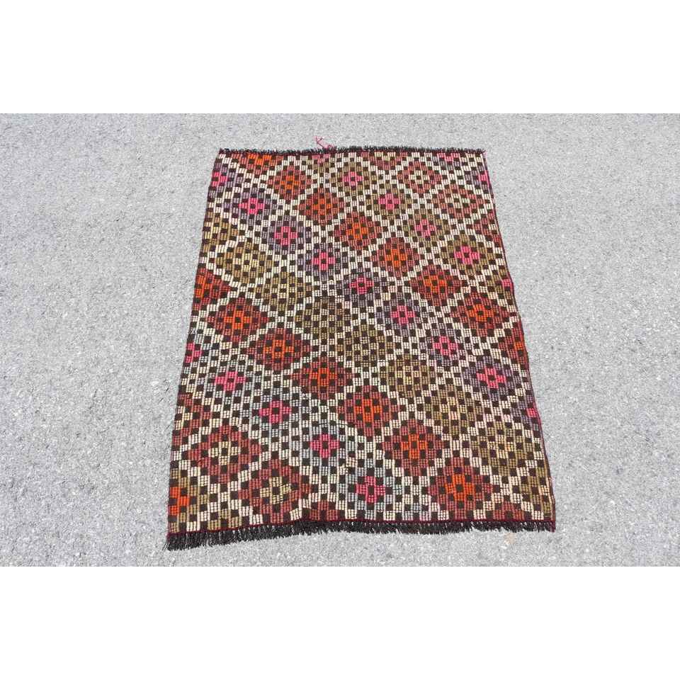 Petit tapis turc de 2,8 x 3,7 pieds, tapis vintage, tapis persan brun Kilim