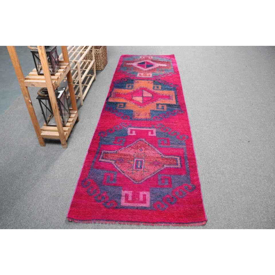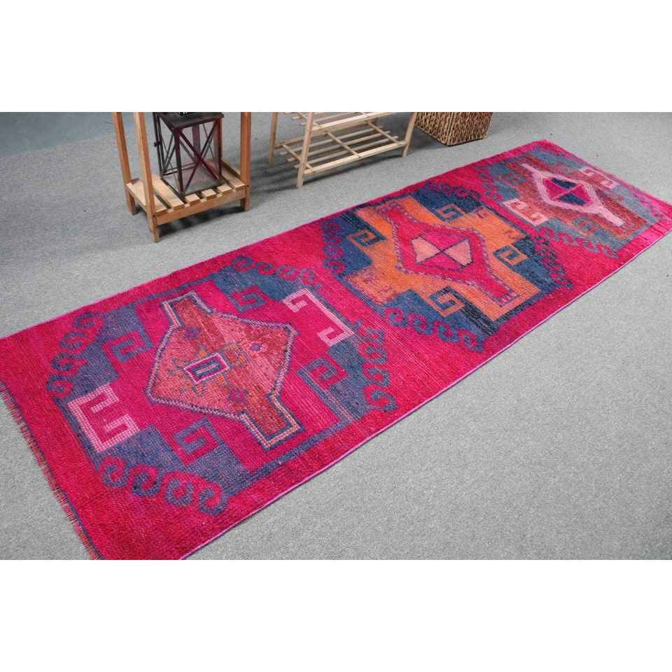 Tapis turc 2,9 x 9,3 pieds, tapis Herki vintage, tapis persan en laine rouge