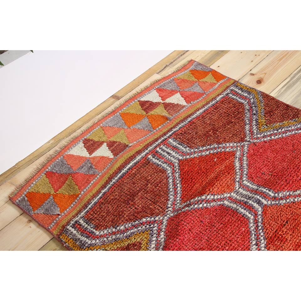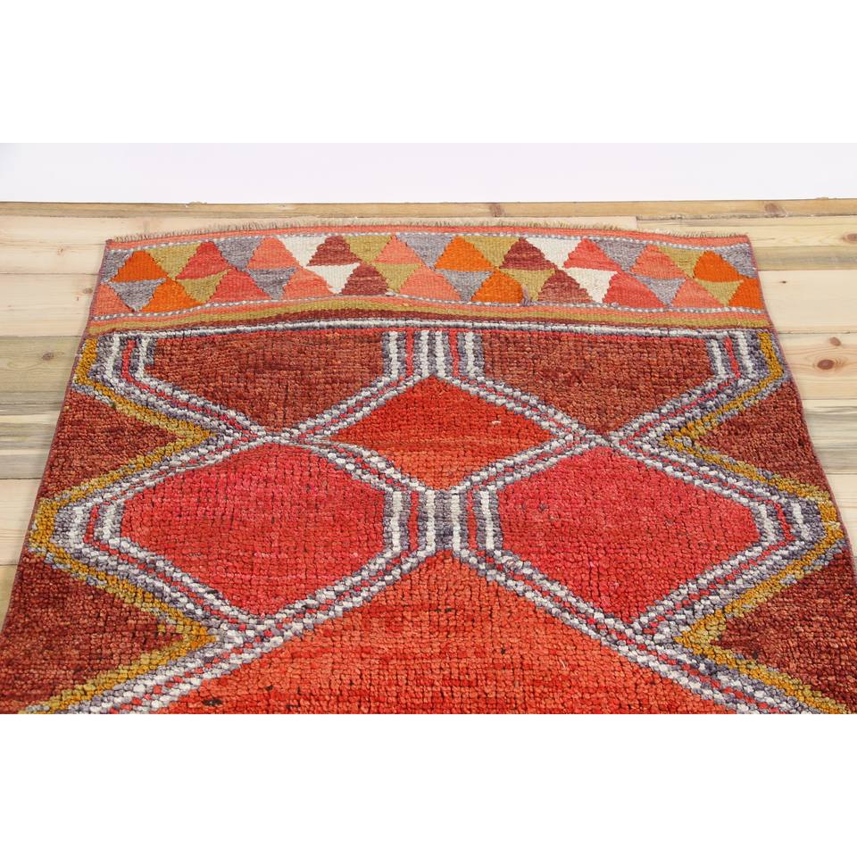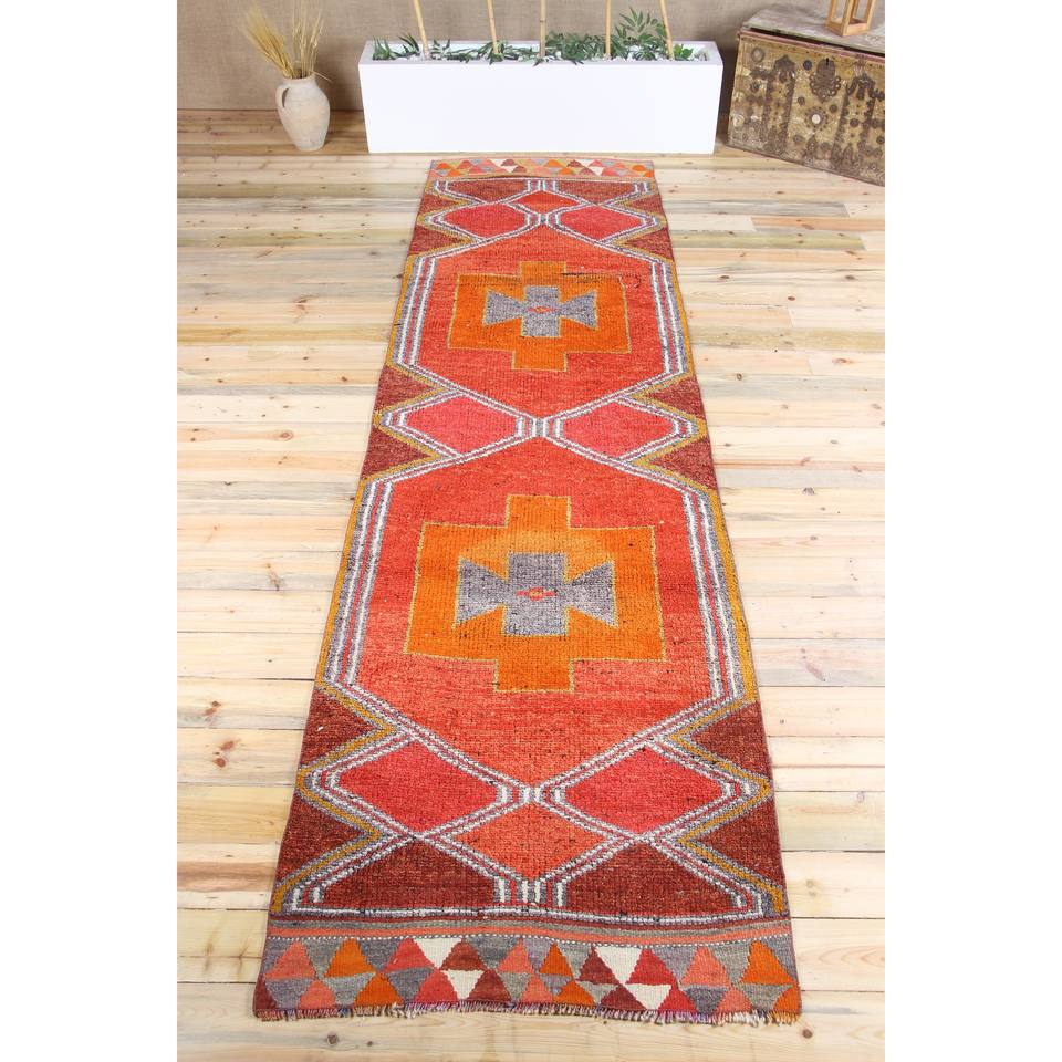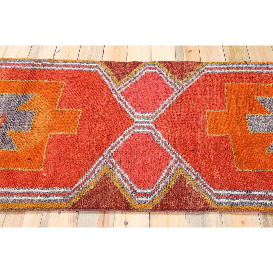 Tapis turc 3,37 x 12,3 pieds, tapis Herki vintage, tapis géométrique orange en laine