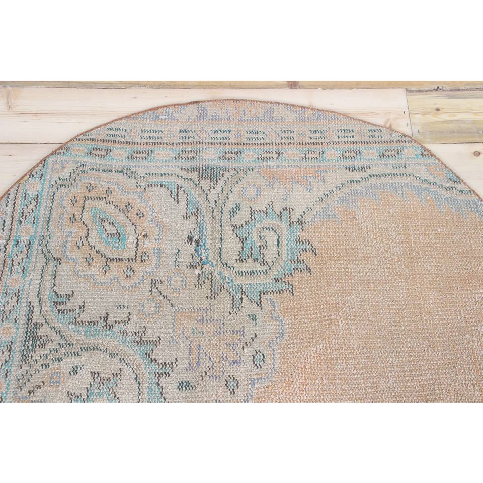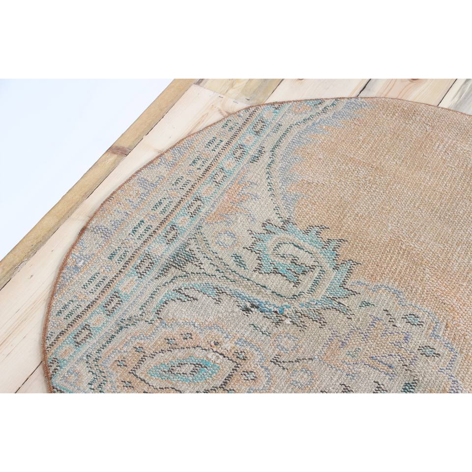 Tapis turc 3,3x3,3 pieds, tapis rond vintage, tapis à motifs floraux orange et vert
