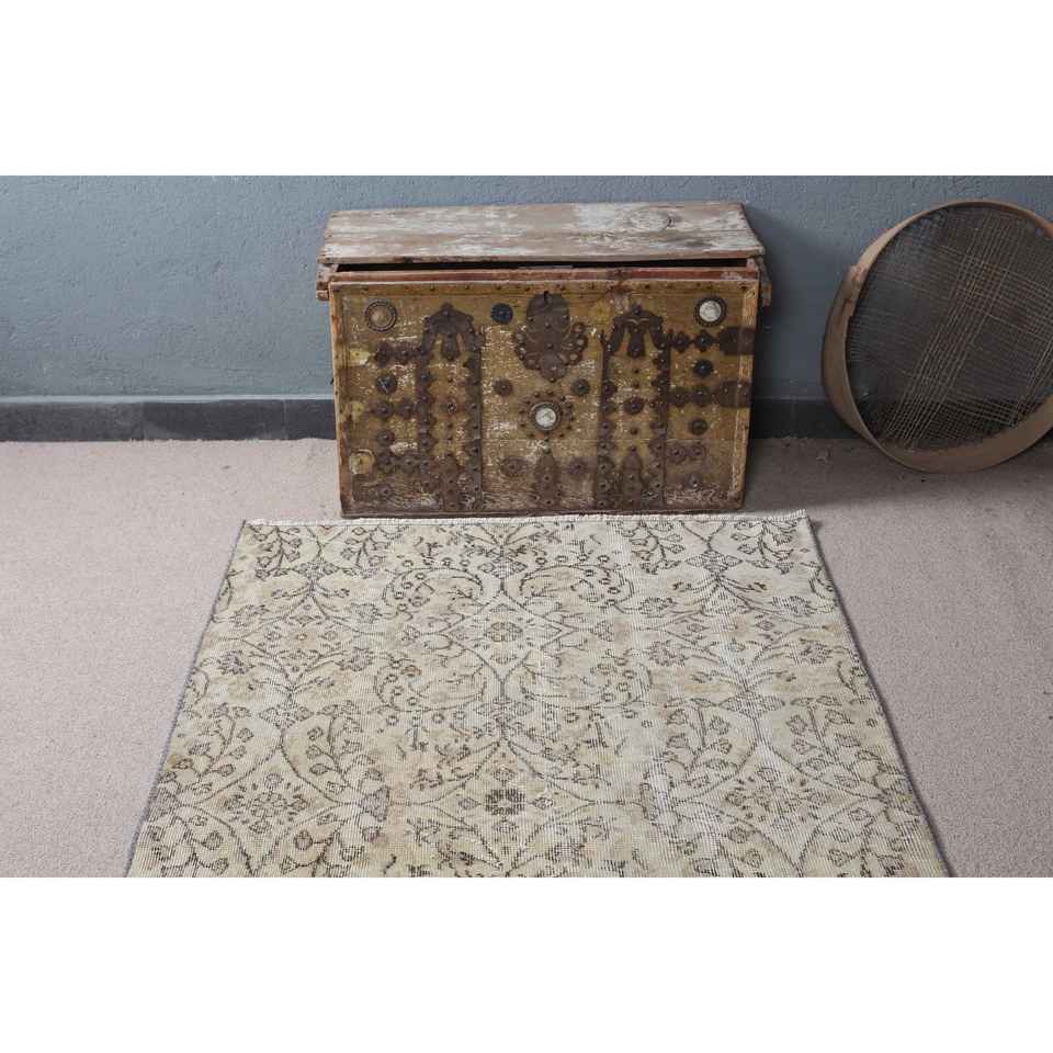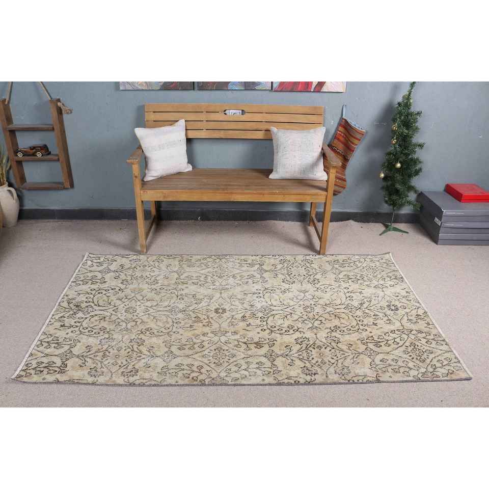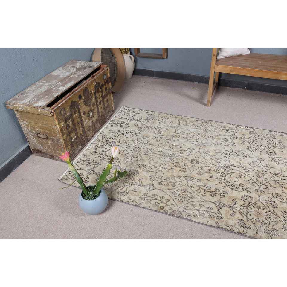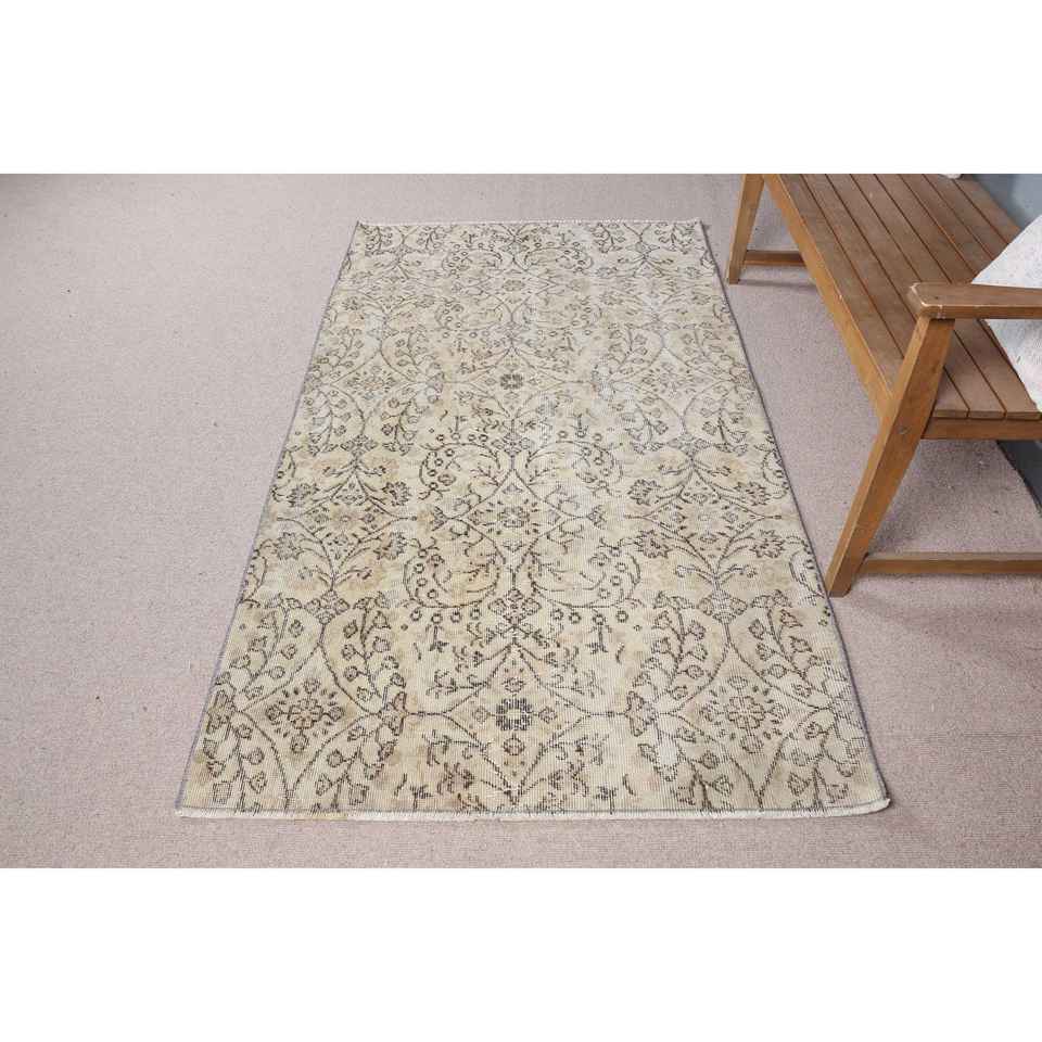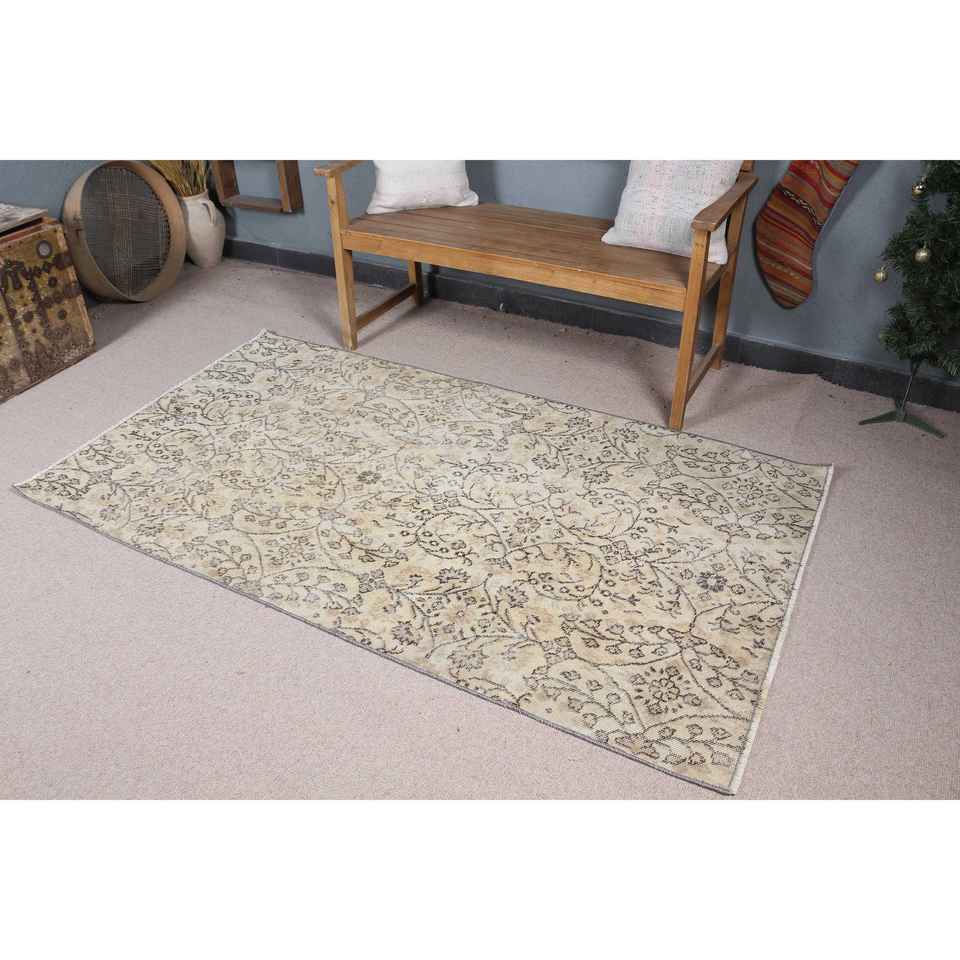 Tapis turc 3,7 x 6,6 pieds, tapis vintage, tapis persan gris en laine