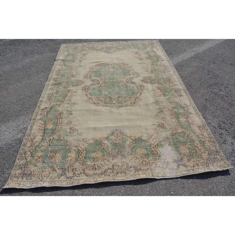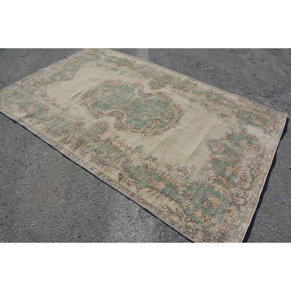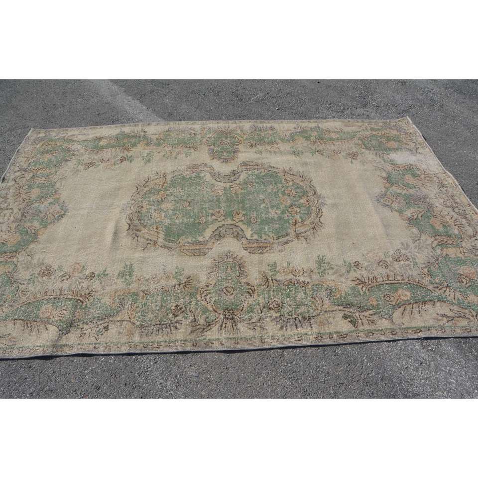 Tapis turc 5,7 x 8,8 pieds, tapis vintage, tapis en laine vert à pois