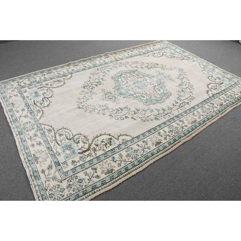 Turkish 5.9x9.1 ft Rug, Vintage Rug, White Oriental Rug Wool