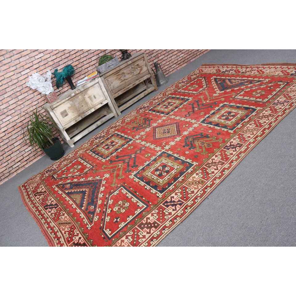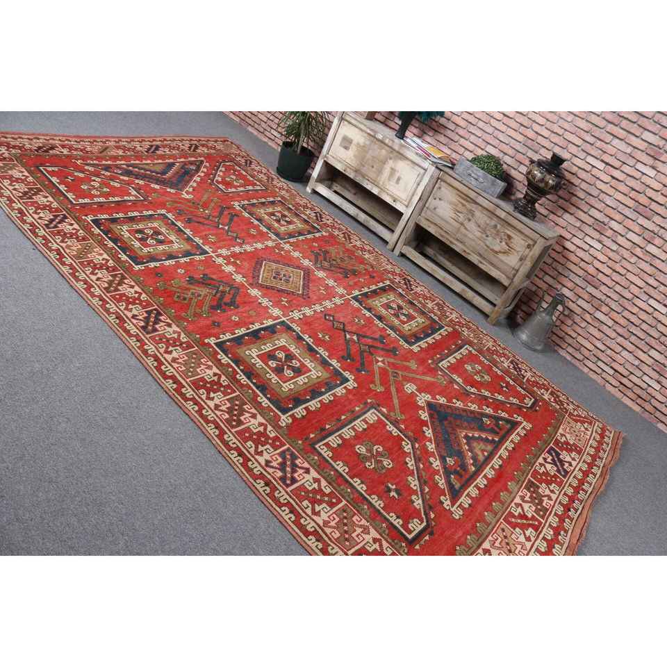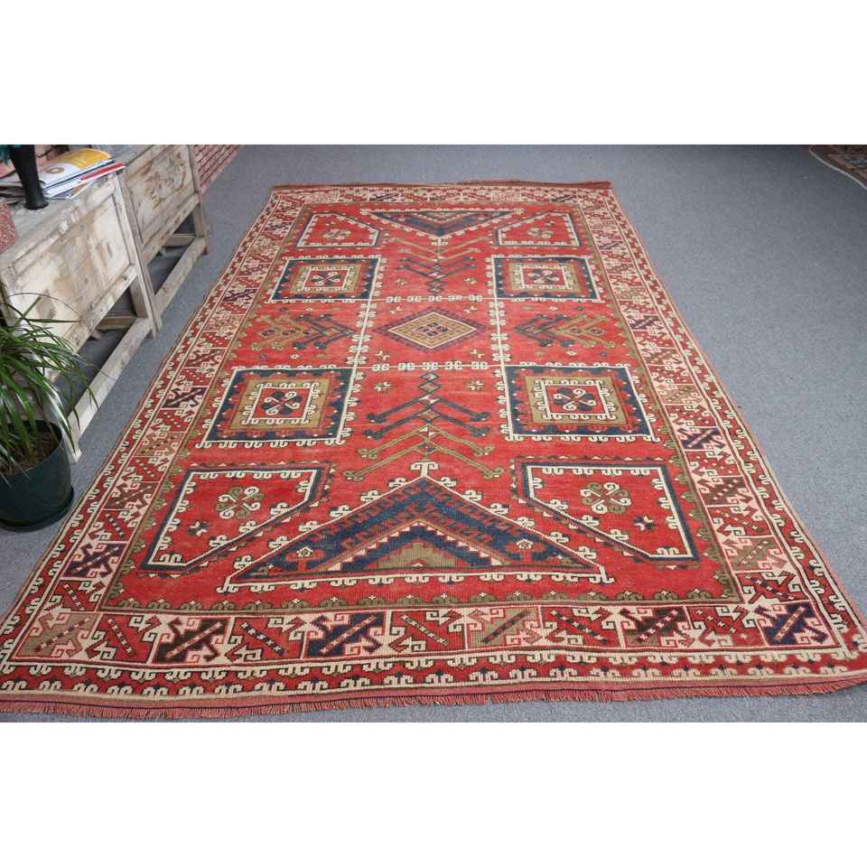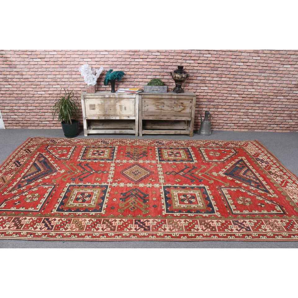 Tapis turc 6,5x10,7 pieds, grand tapis vintage, tapis marocain rouge et bleu
