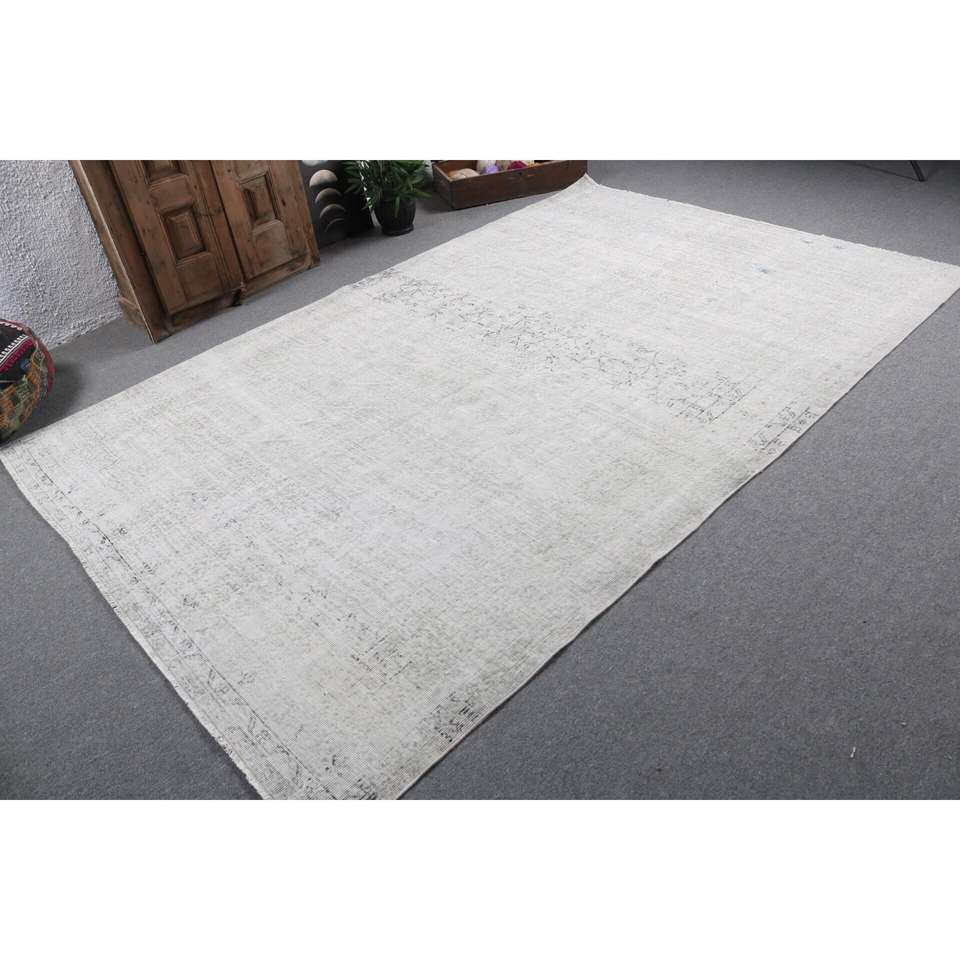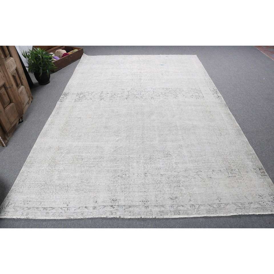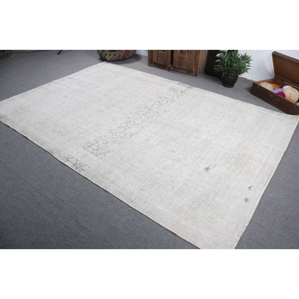 Tapis turc 6,6 x 9,9 pieds, grand tapis vintage, tapis en laine persane blanc