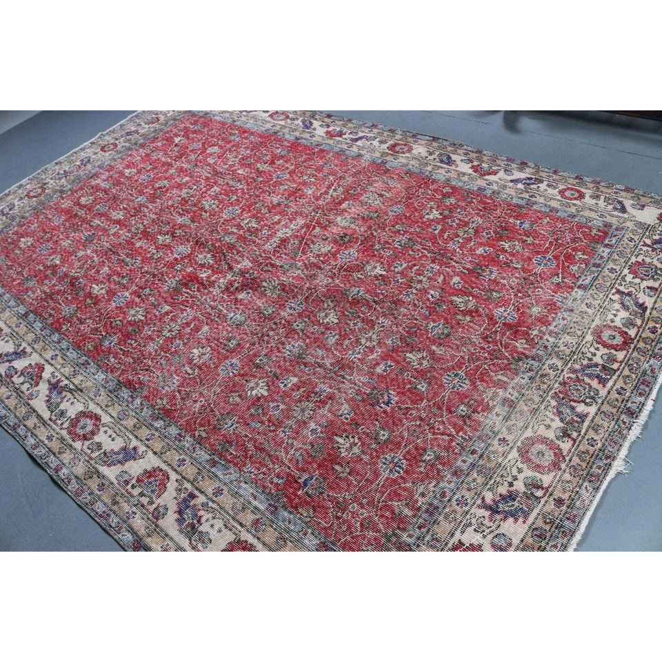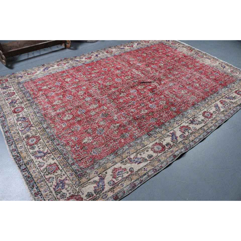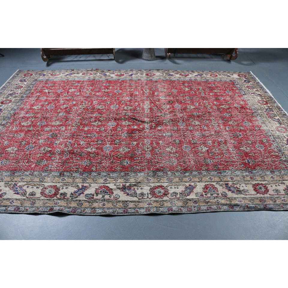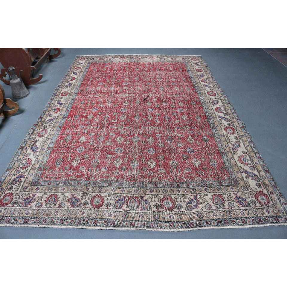 Tapis turc 6,9 x 10,2 pieds, tapis vintage surdimensionné, tapis en laine camouflage rouge