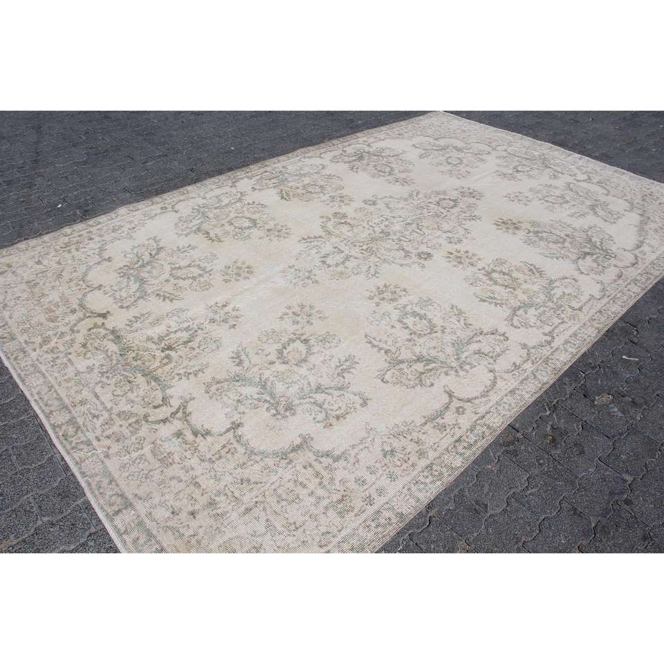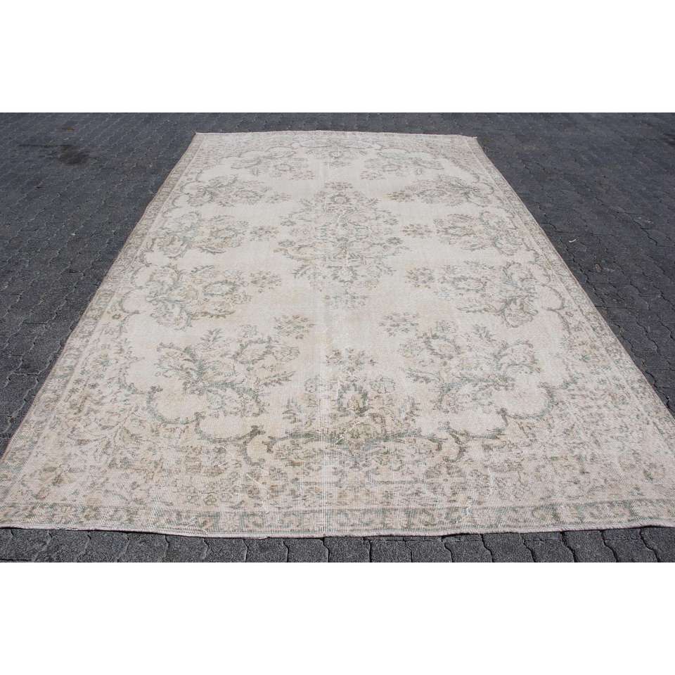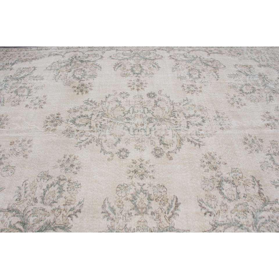 Tapis turc 7,3 x 11,7 pieds, tapis vintage, tapis à bordure blanche en laine