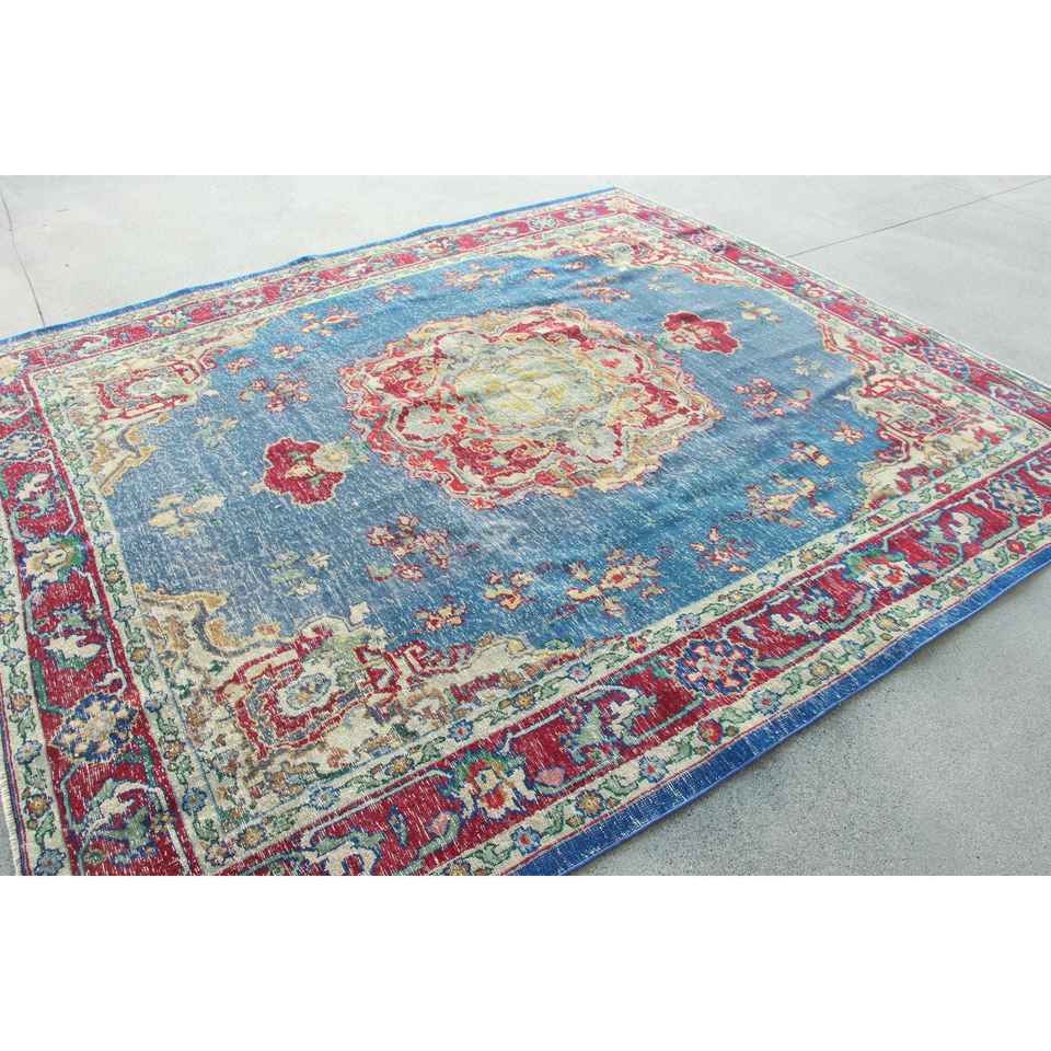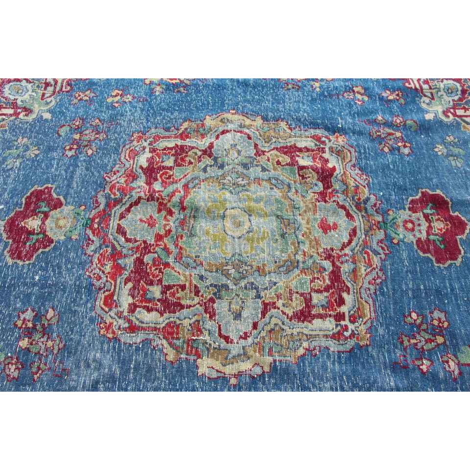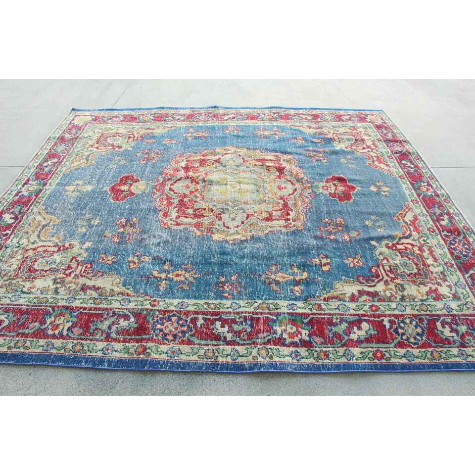 Tapis turc surdimensionné 8x8,9 pieds, tapis vintage, tapis à pois bleus