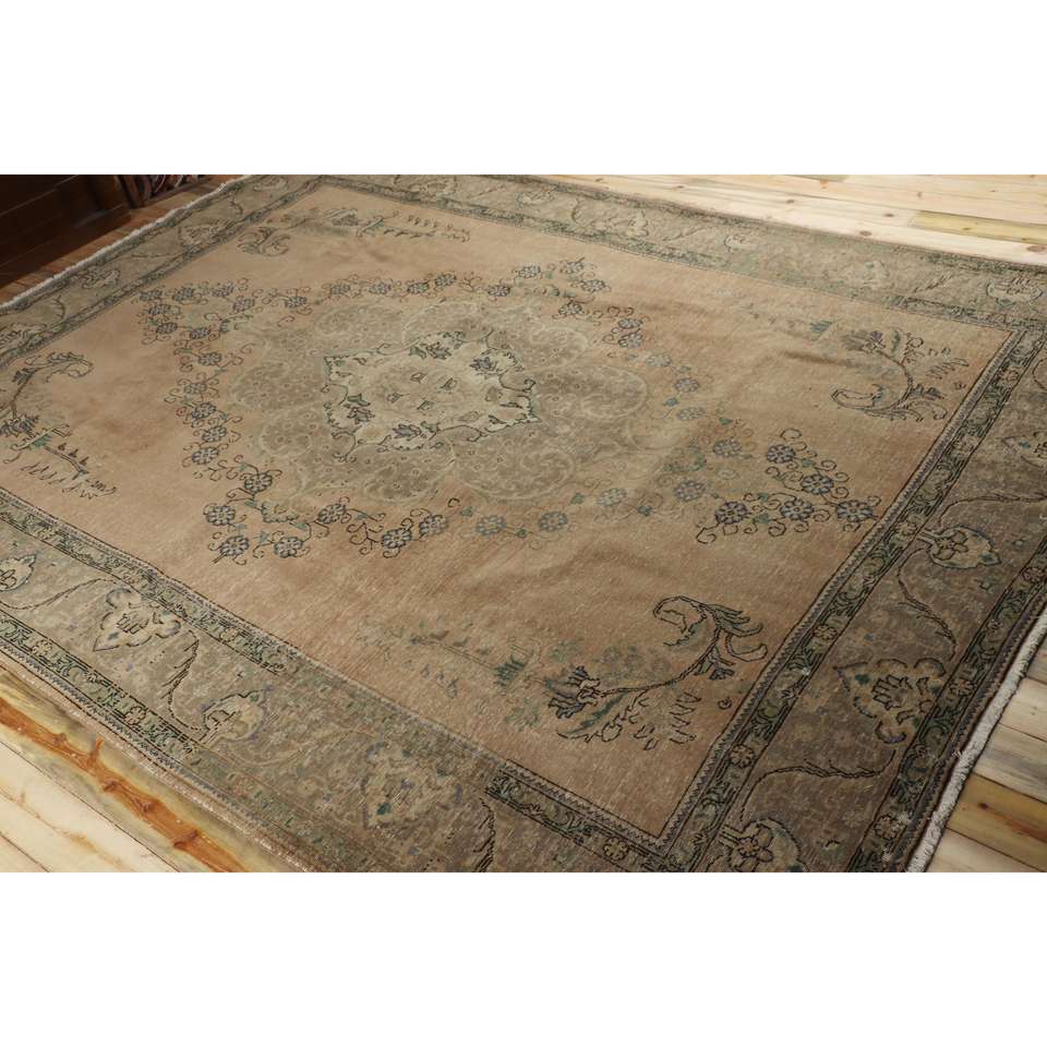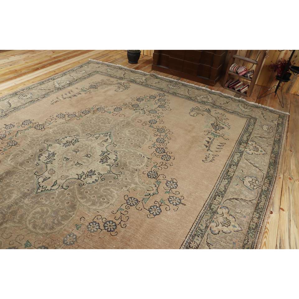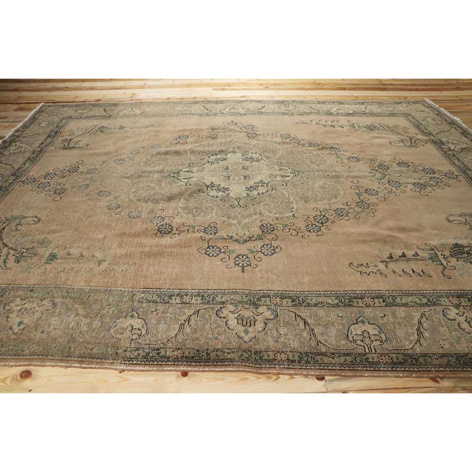 Tapis turc 9,5x13,1 pieds, tapis vintage surdimensionné, tapis persan en laine marron bleu