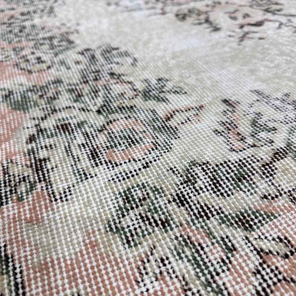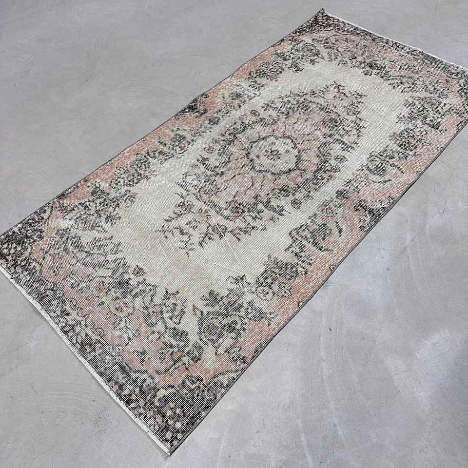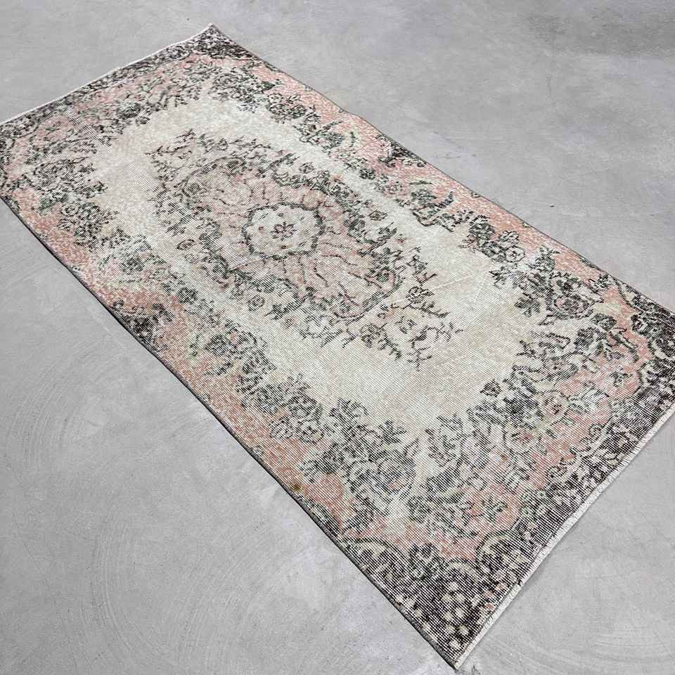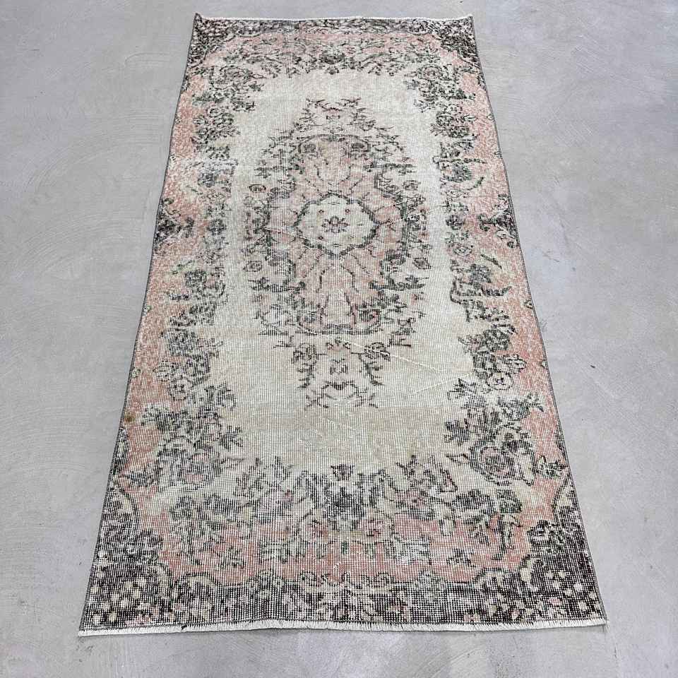 Tapis turc à accents orientaux 3,2x6,4 pieds, tapis en laine rose vintage