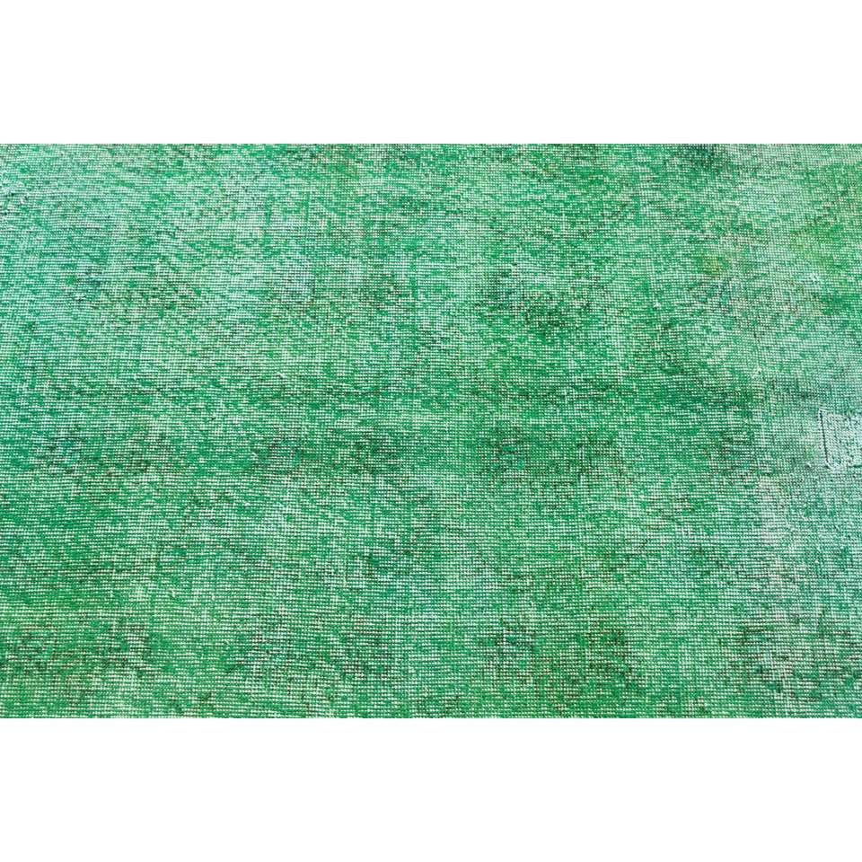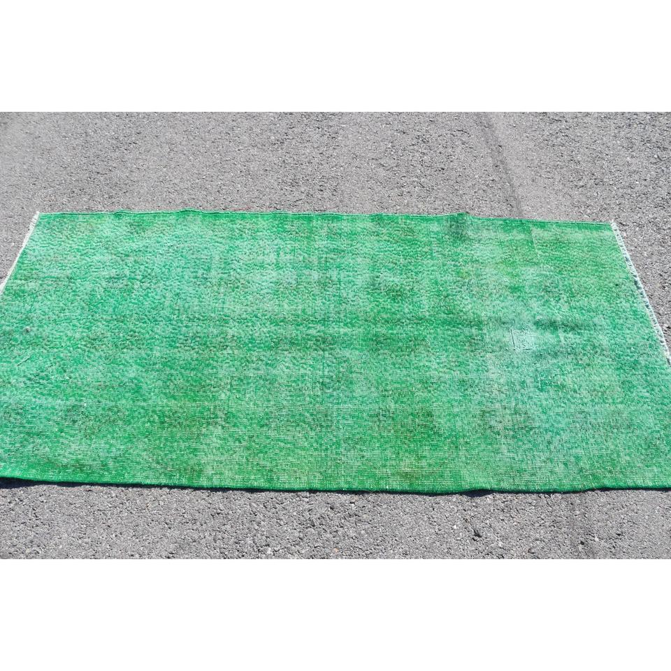 Tapis turc à accents traditionnels, 3,2x6,6 pieds, tapis vintage, tapis en laine unie verte