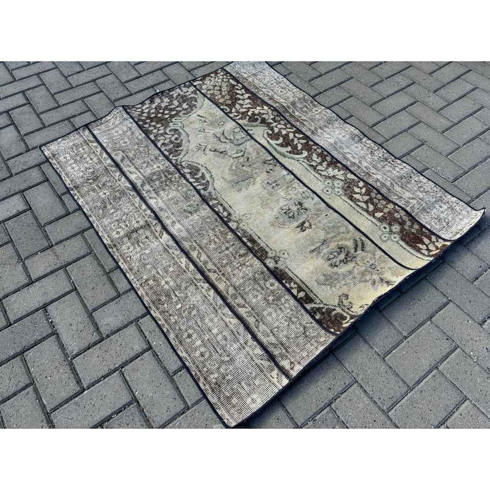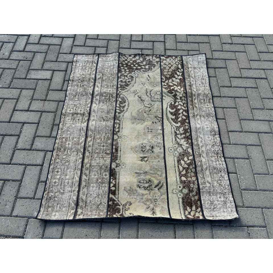 Tapis turc à accents persans 3,7x4,4 pieds, tapis en laine persan brun vintage