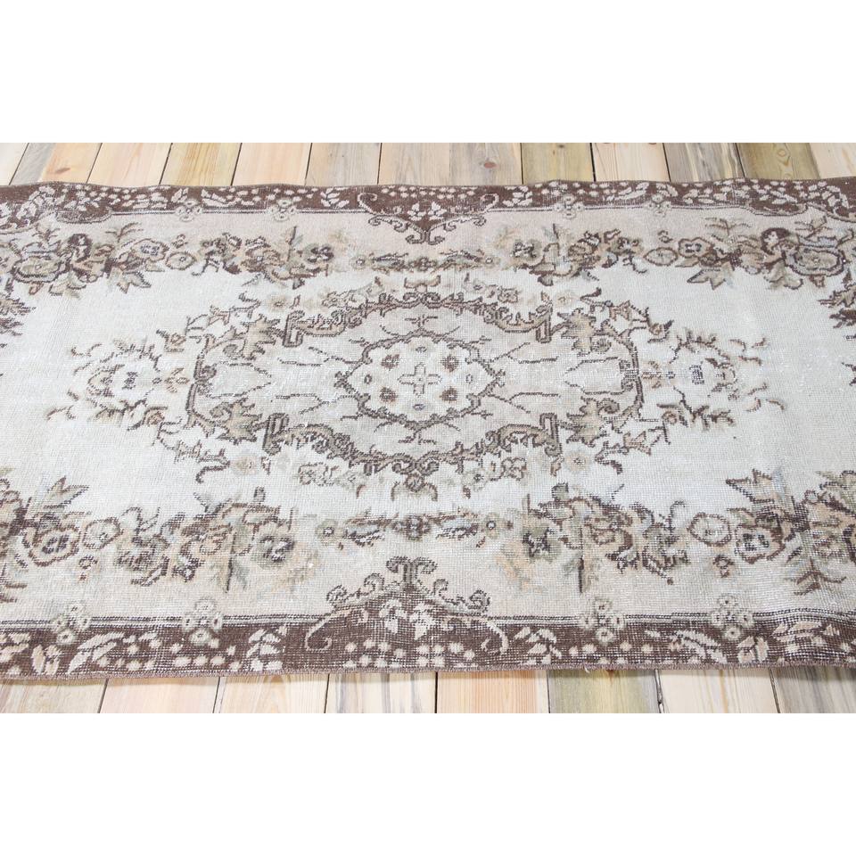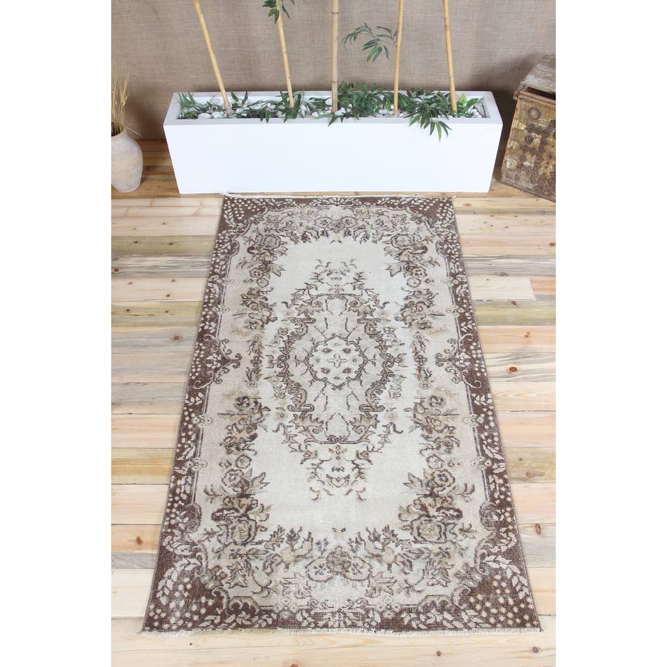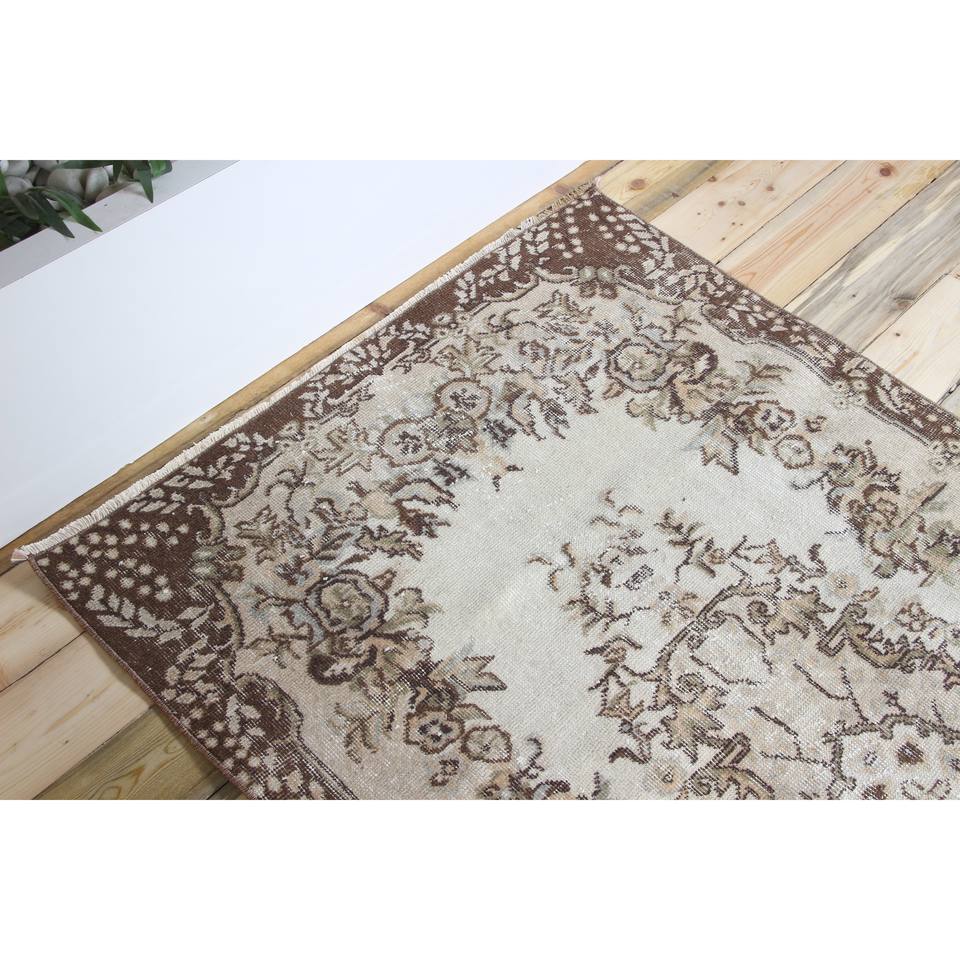 Tapis turc 3,8x6,7 pieds, tapis en laine vintage à motifs floraux marron