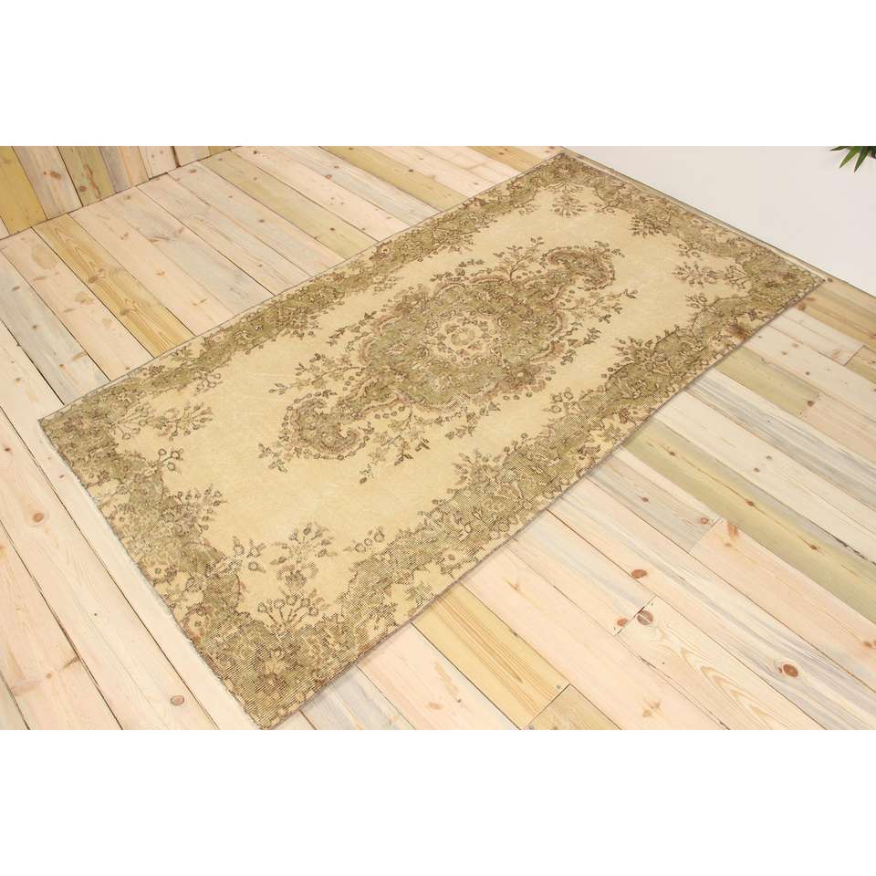 Tapis turc 3,8x7,2 pieds, tapis en laine vintage à motifs floraux marron