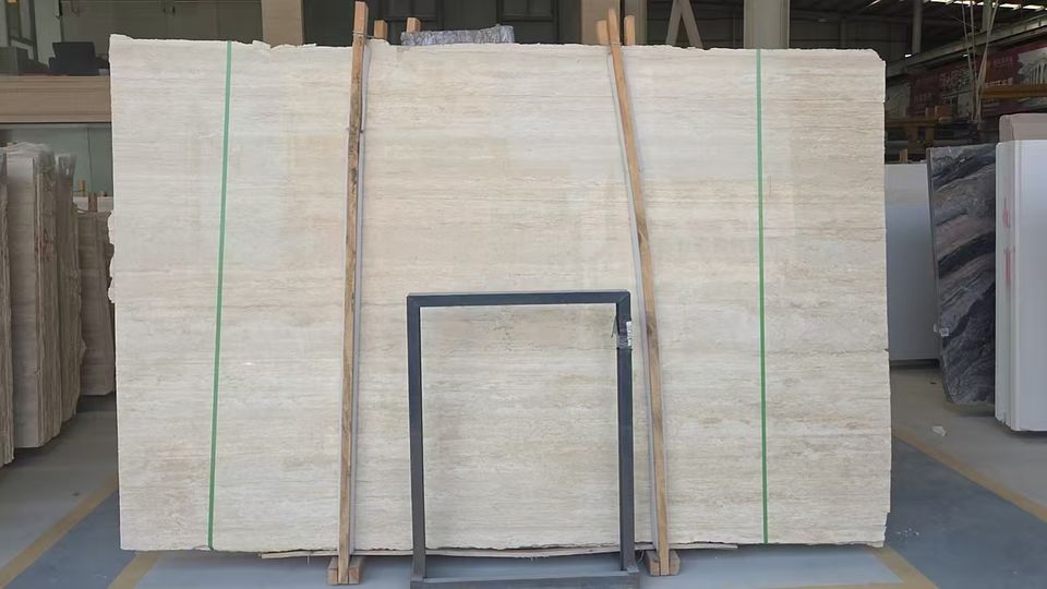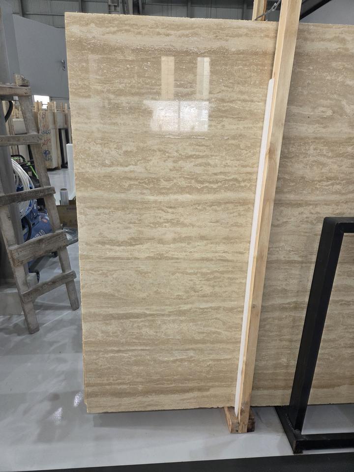 Dalles de travertin beige turc antique, finition brillante, DCT021, pierre naturelle, revêtement mural extérieur, décoration extérieure