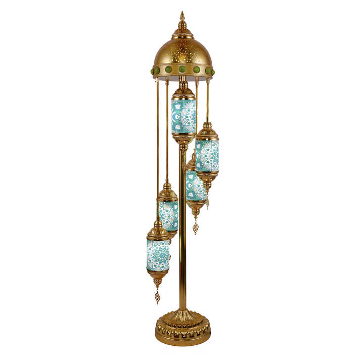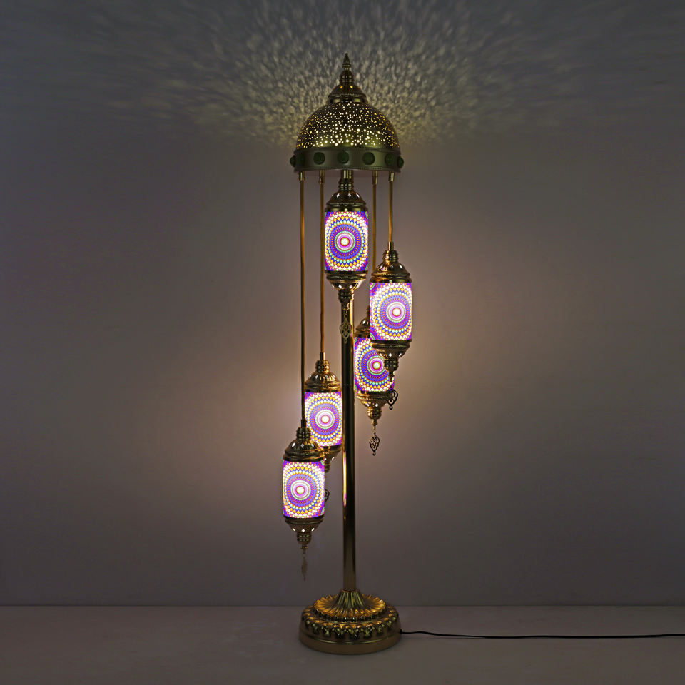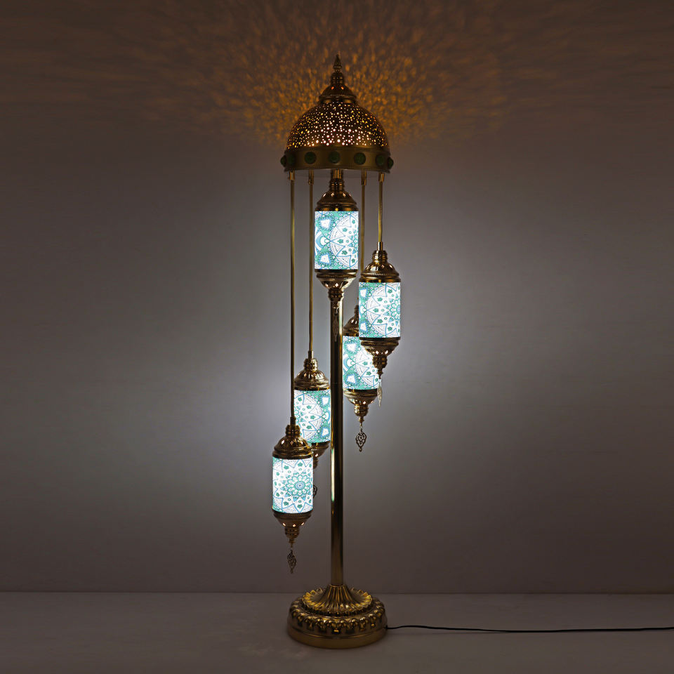 Lampe sur pied en fer et verre de style turc et bohème, design luxueux et nouveau, avec un capuchon doré, lumière blanche chaude douce 2700K pour la décoration de la maison