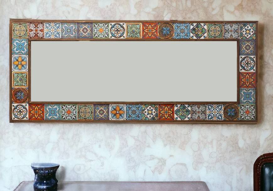 Turkish Handcrafted Tile Stone Full Length Mirror - Decorative Multicolor Bohemian Wall Hanging Mirror - Living Room Decor