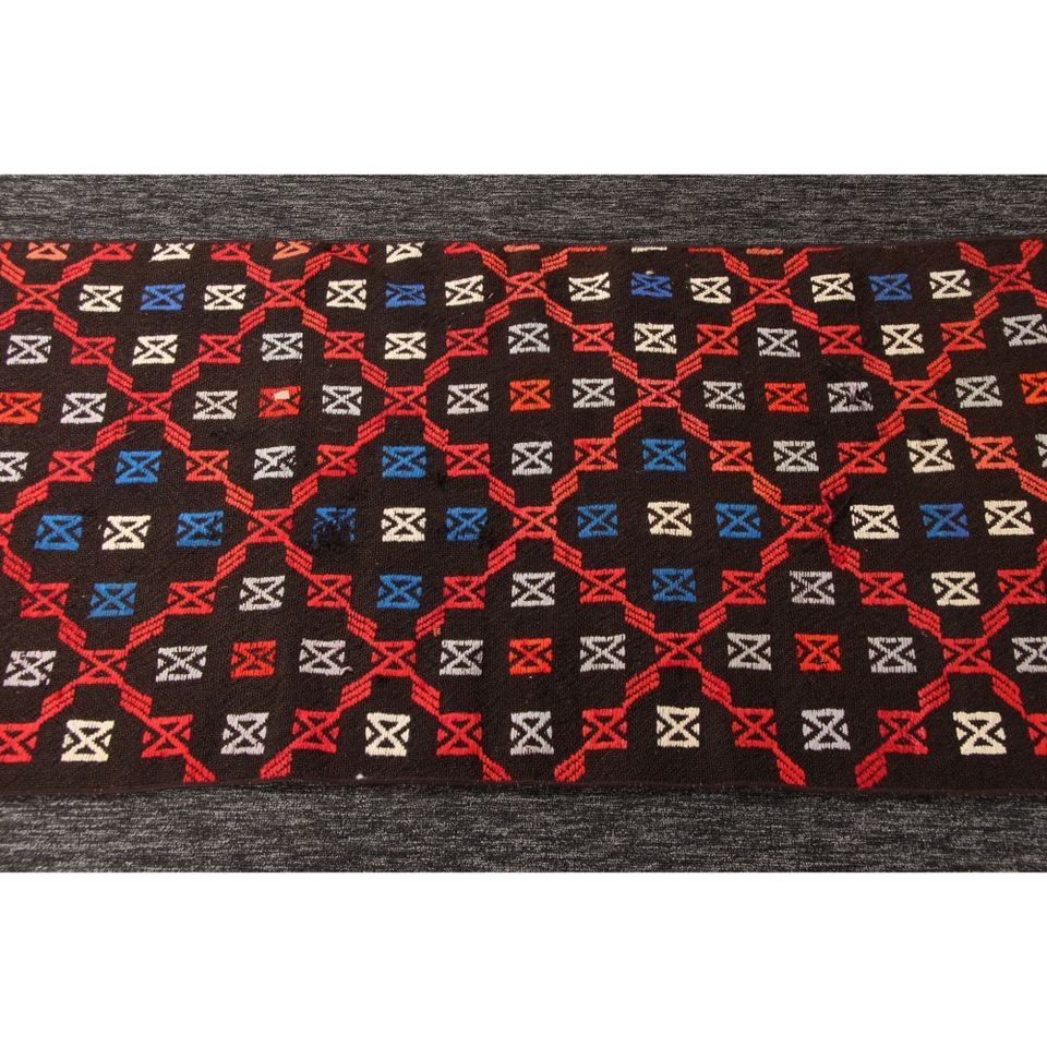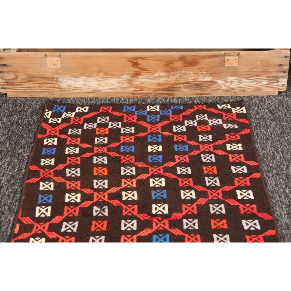 Tapis turc KLM 2,2x6,9 pieds, tapis vintage géométrique arc-en-ciel marron