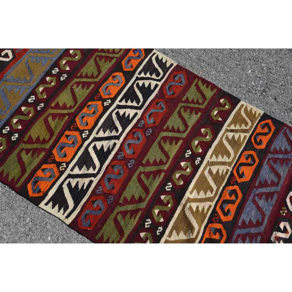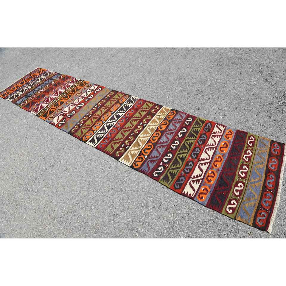 Tapis Kilim turc 2,5x10,7 pieds, tapis vintage en laine persane rouge et bleu