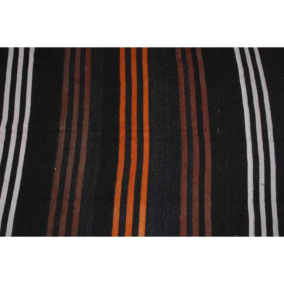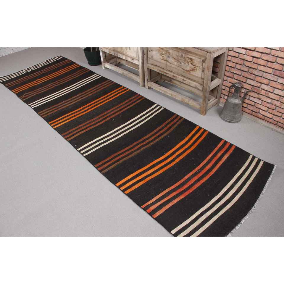 Turkish Kilim Runner Rug 3.1x11 ft (93x335 cm), Vintage Black Southwestern Wool Rug