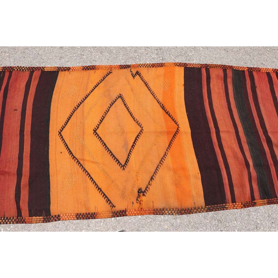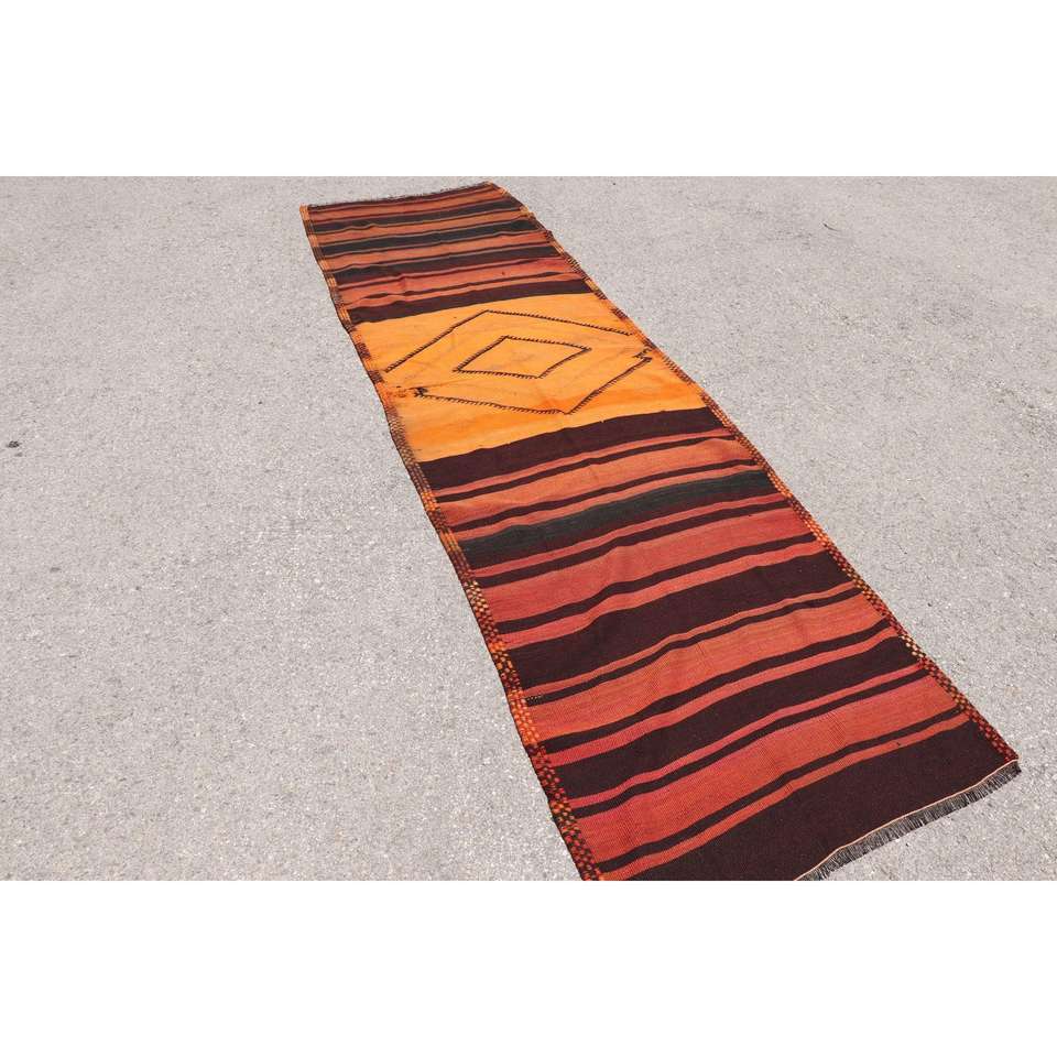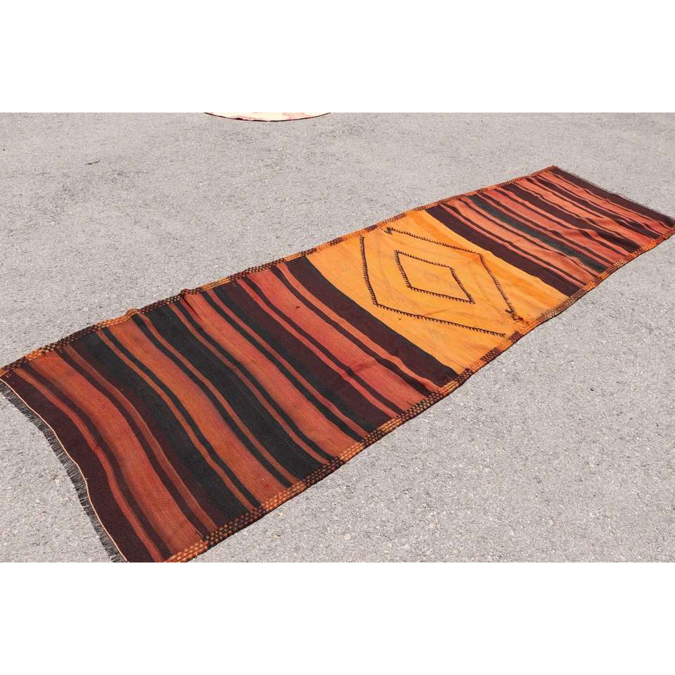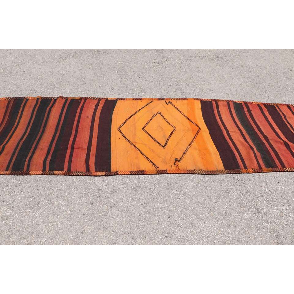 Tapis de couloir turc Kilim 3,1x11,3 pi (93x345 cm), tapis persan vintage marron