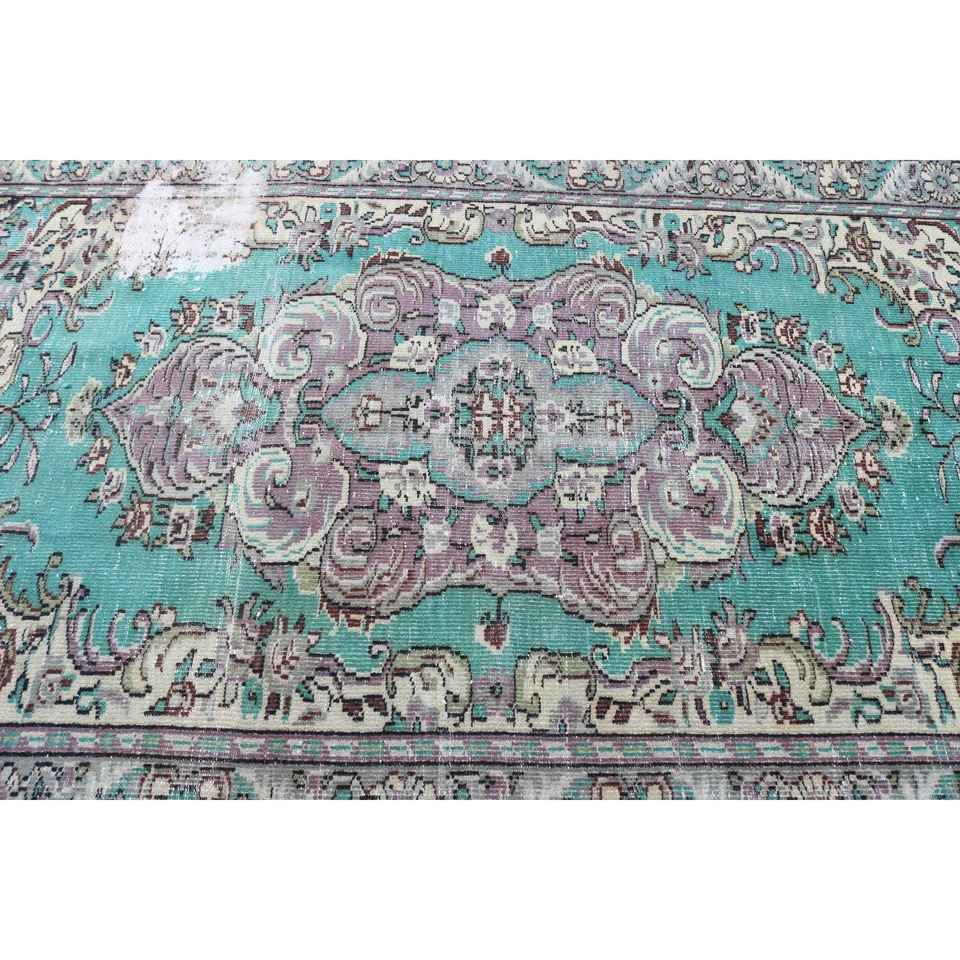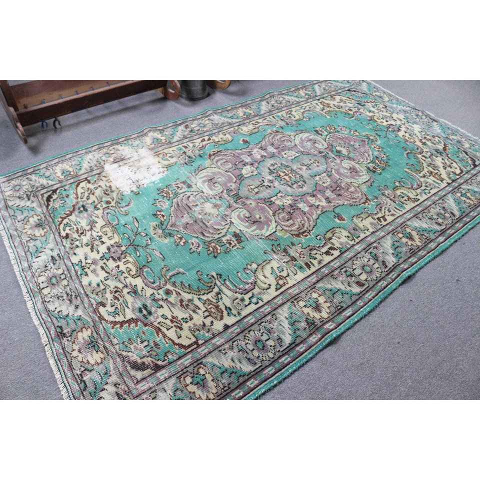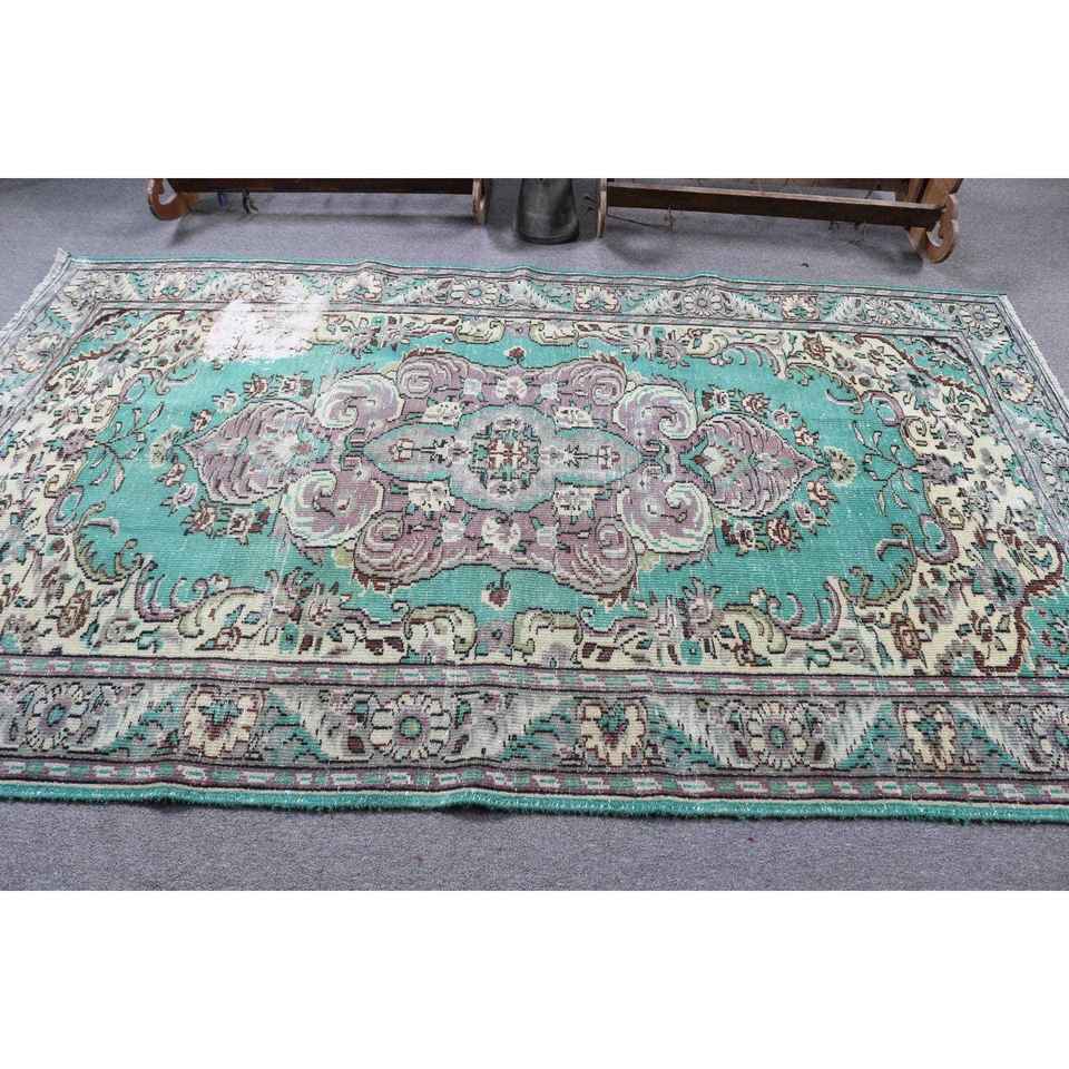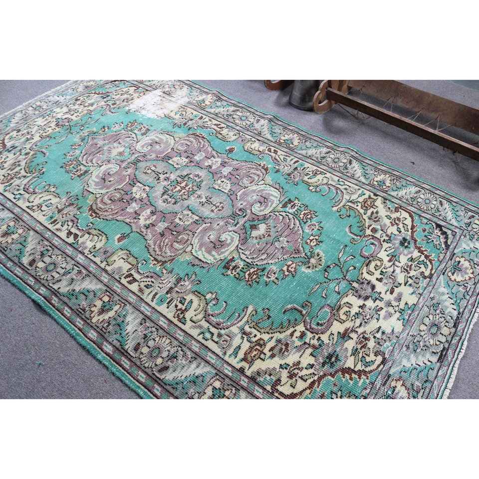 Grand tapis turc 5,2x8,5 pieds, tapis en laine bleu vintage ombré