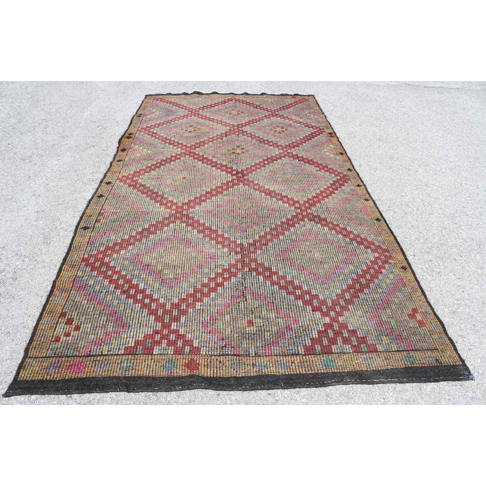 Grand tapis turc, tapis vintage 5,7x11,2 pieds, tapis en laine rouge Kilim