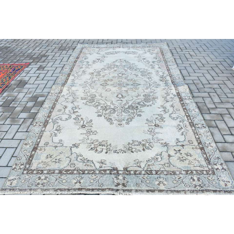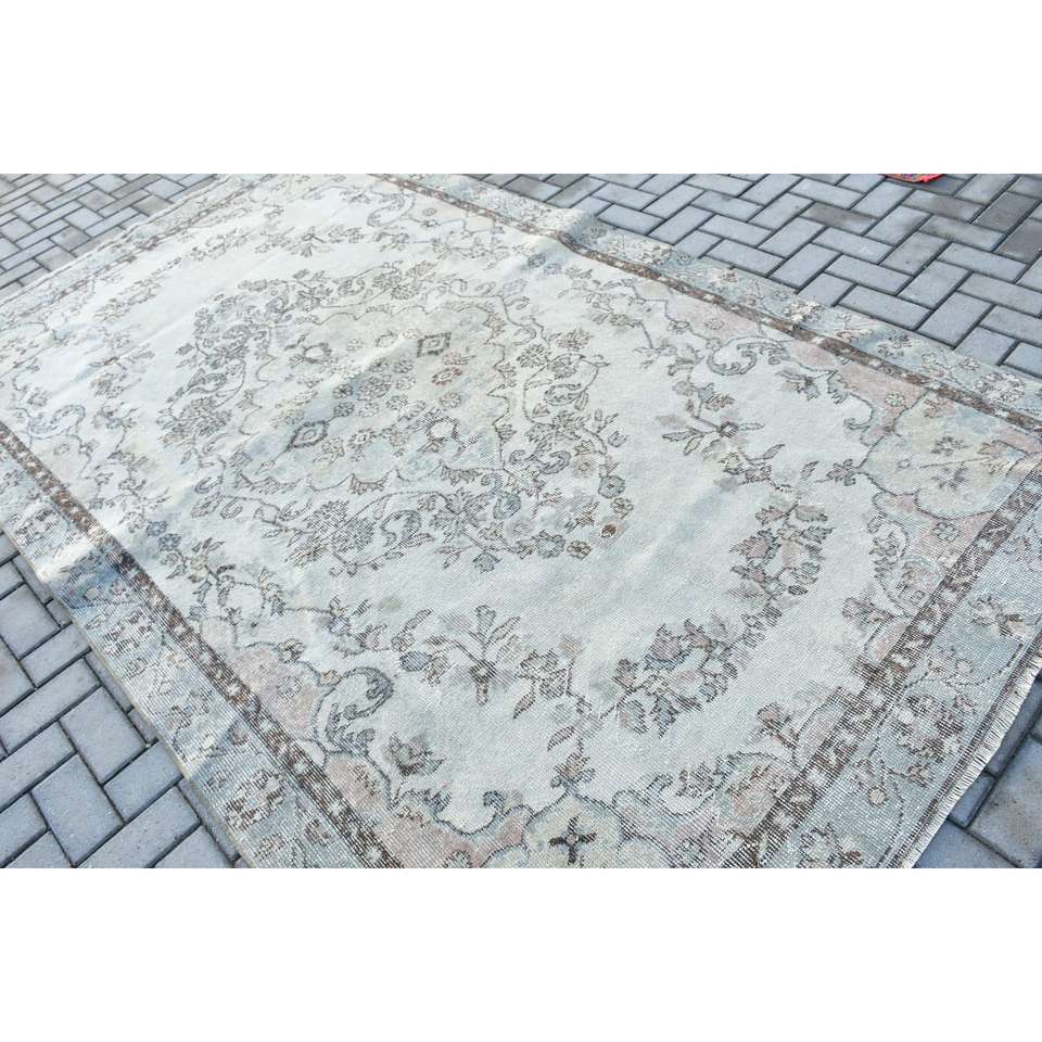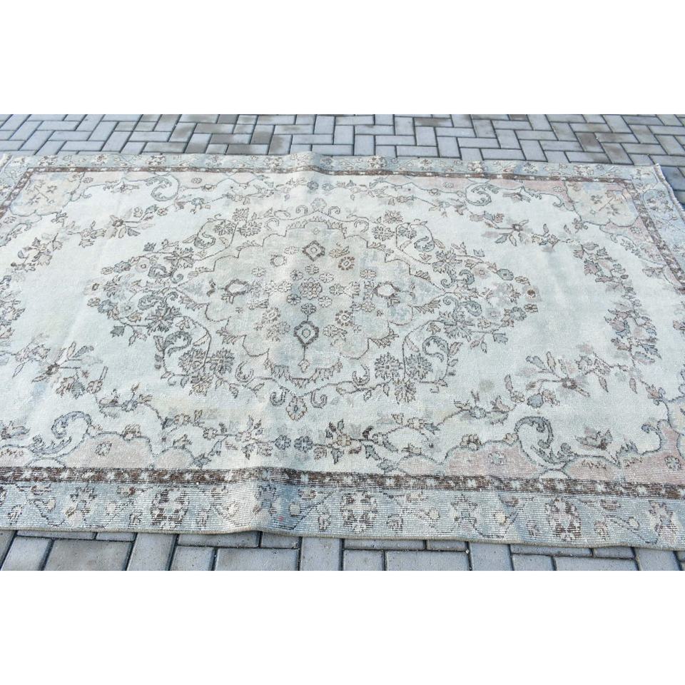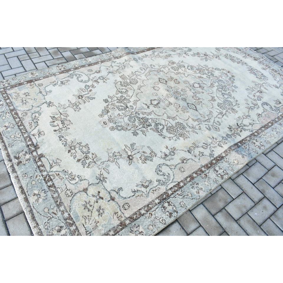 Grand tapis turc, tapis vintage 5,8x9,8 pieds, tapis oriental en laine gris