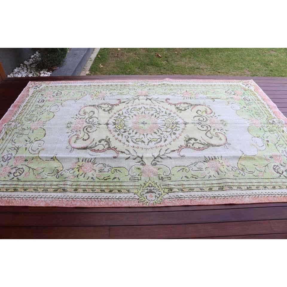 Turkish Large Rug 5.9x9.2 ft, Green Oriental Vintage Wool Rug