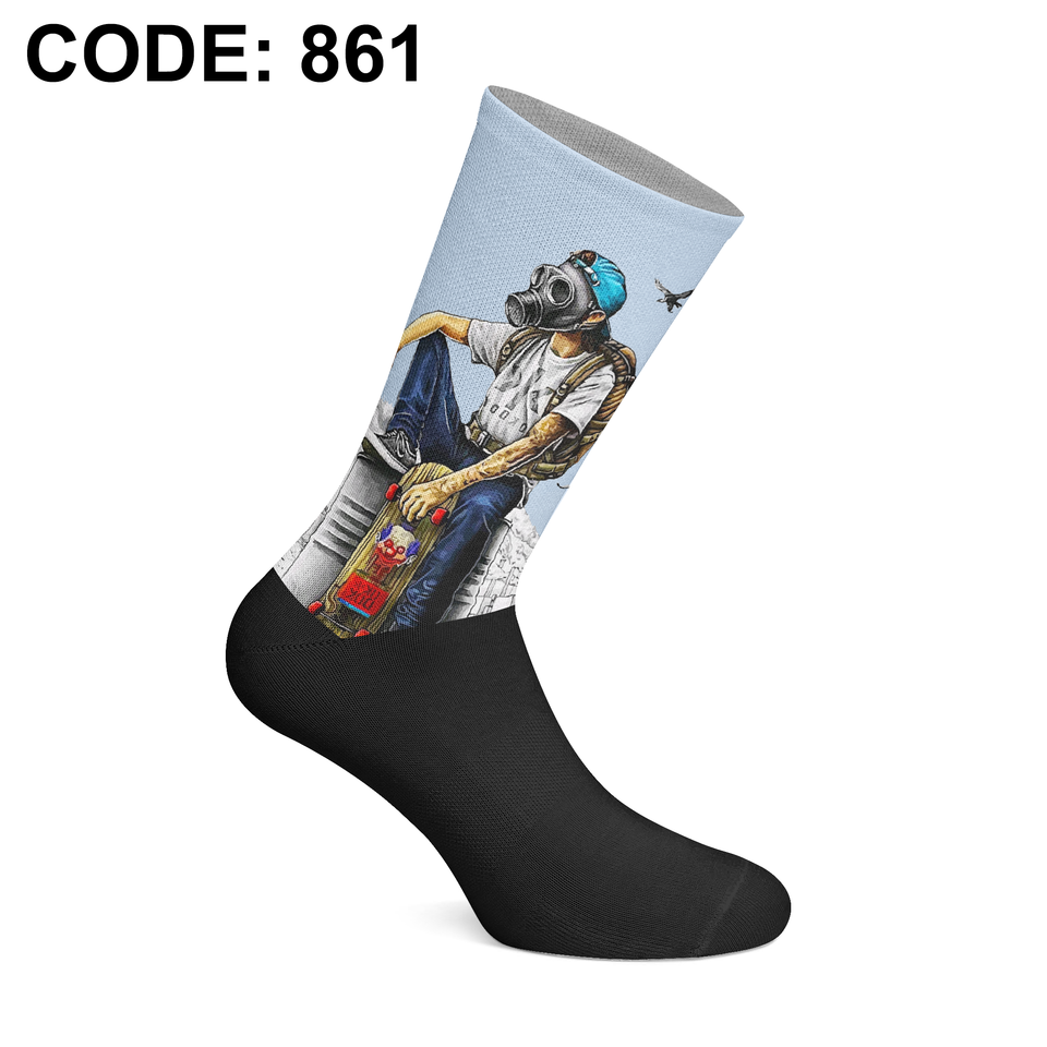 Chaussettes imprimées numériquement de fabrication turque, série d'art par sublimation, motifs uniques d'illustrateurs, confortables, impression intégrale