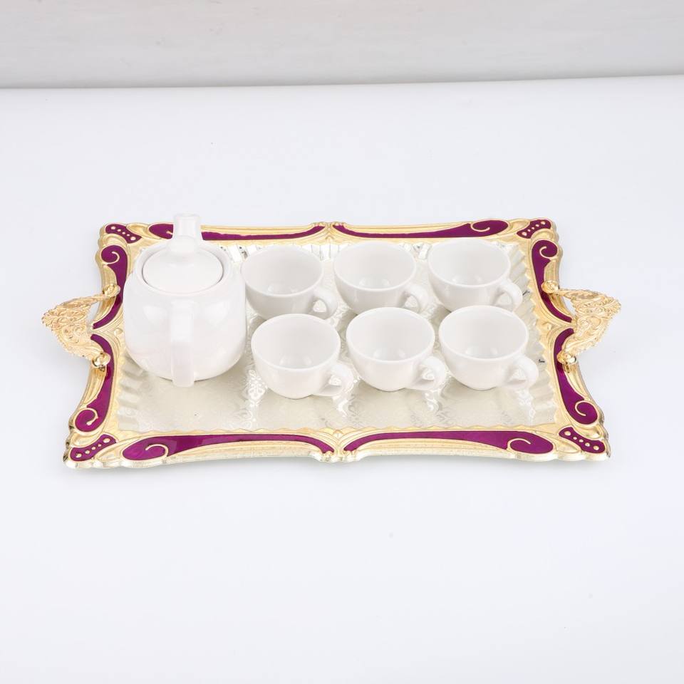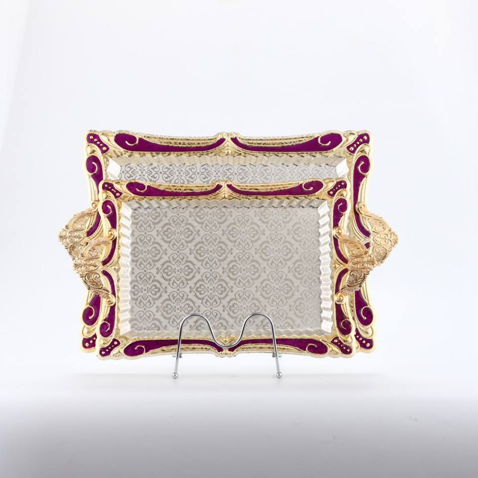 Plateau en métal gravé rectangle de style ottoman turc Plateau de service en métal écologique
