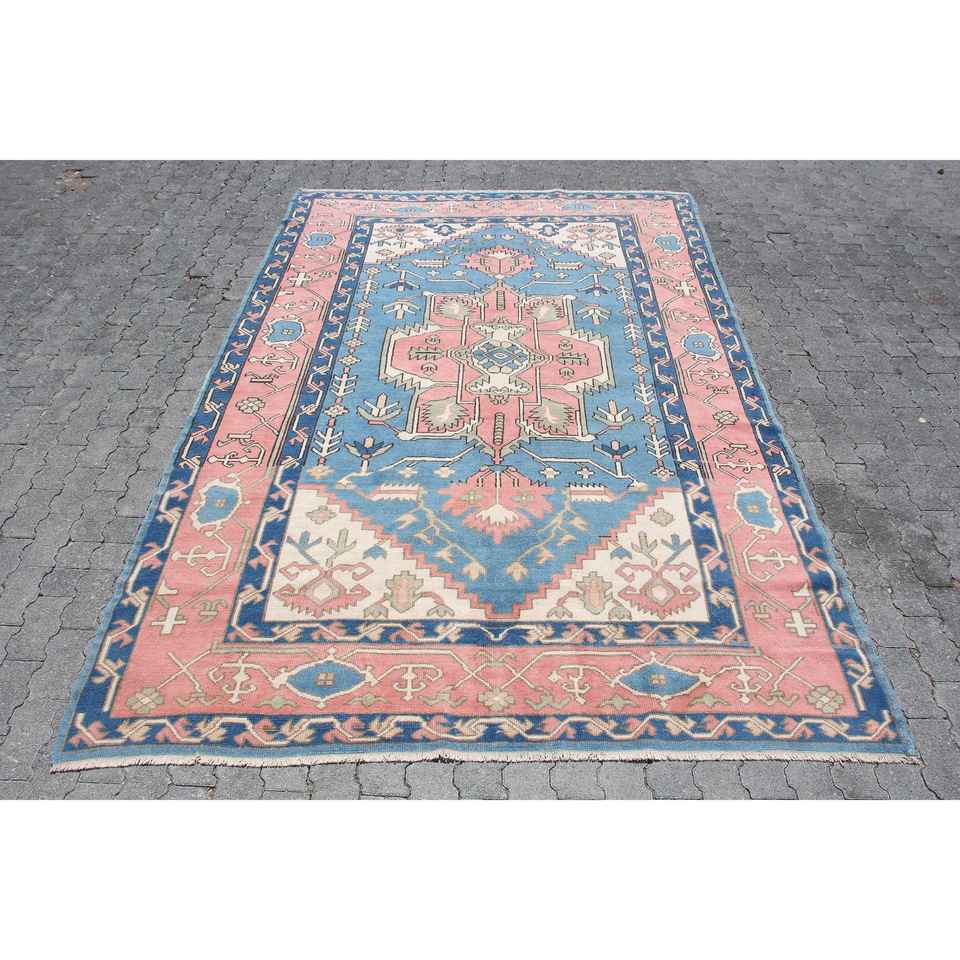 Tapis turc surdimensionné 6,8x10,5 pieds, tapis en laine bleu vintage uni